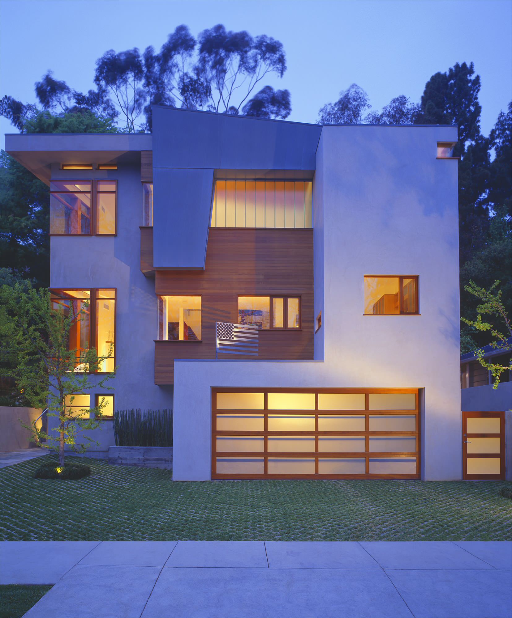 You may have to look twice to see it, but there above the garage is a metal and modern take on the stars and stripes.