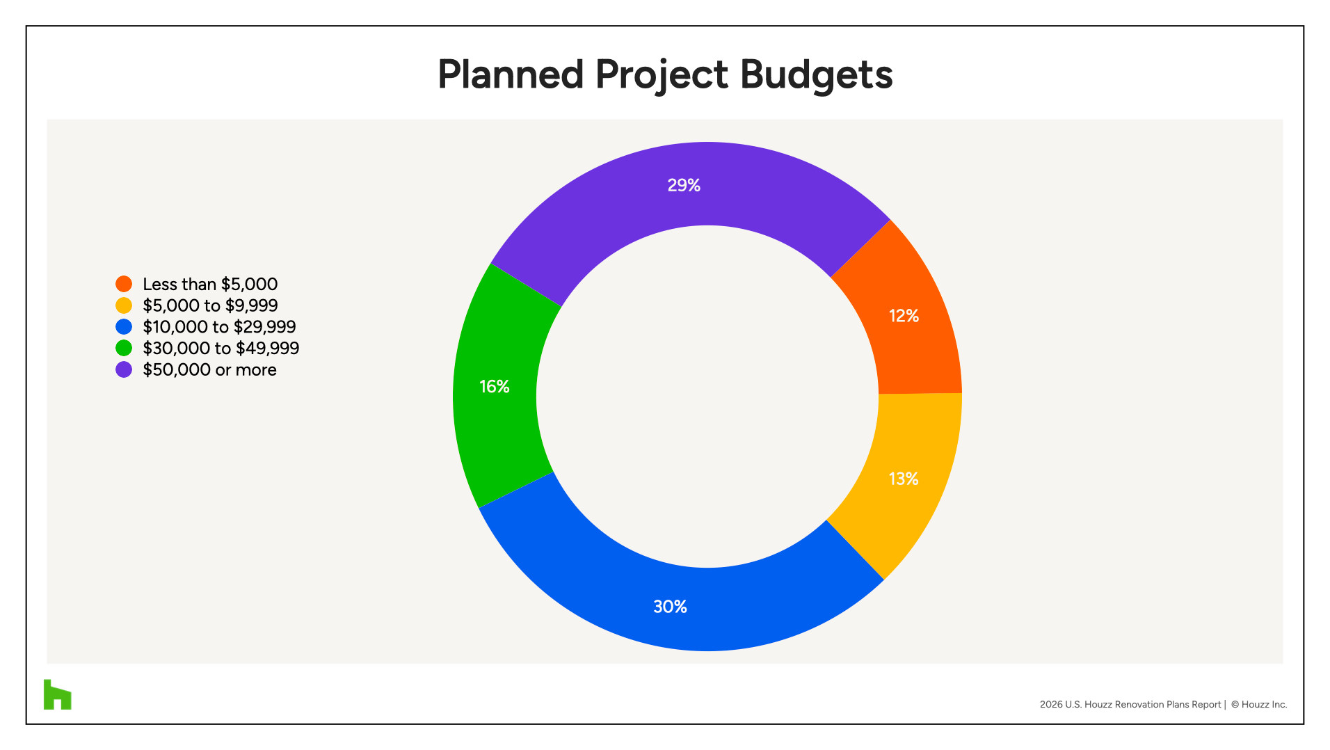 Three-quarters of homeowners planning to renovate in 2026 expect to spend $10,000 or more on their projects.