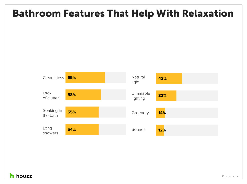 In the midst of a stressful year, 2 in 5 homeowners remodeling their master bathroom say they use their renovated spaces to unwind. Cleanliness and a lack of clutter are keys to creating a restful environment for many of these homeowners.