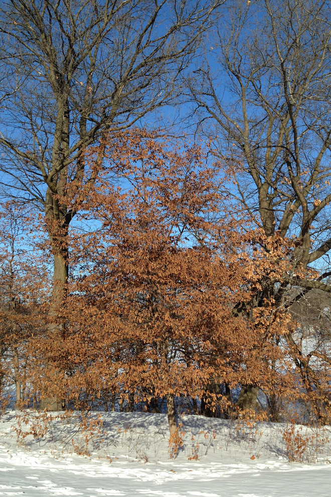 Hop hornbeam holds its leaves through the winter, providing interest.