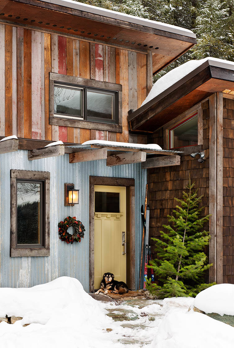 For some pets, winter is a favorite time to get outside and frolic in the fresh, cold air — and in the snow in some areas. In this popular photo from Mindful Designs in Montana, a hardy pooch enjoys a rest in front of a rustic mountain cabin.