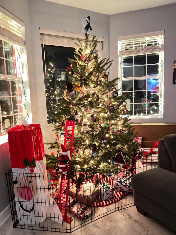 I recall our family dog Brownie inadvertently knocking the tree over when trying to lap up the water from its stand. So I think a lot of us can relate to Houzz reader Dustin M‘s practical solution to puppy proofing the tree! If you have pets, do you have to protect the tree from them? If so, how do you do it?