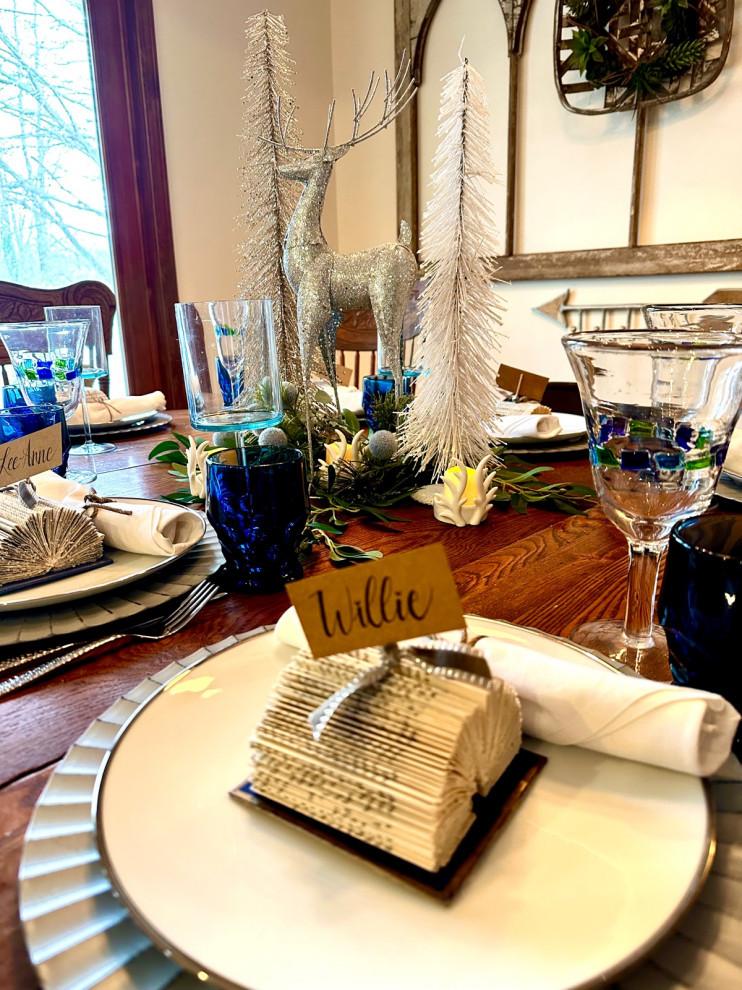 She also pays special attention to each guest with place cards. “I love making place cards each year, and my love of old books and book folding was perfect for this year!”