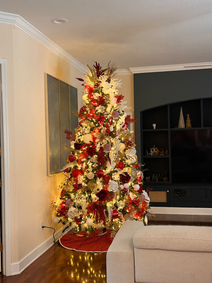 Houzz user Sue went with a red-and-white decorating palette on this beautiful tree.