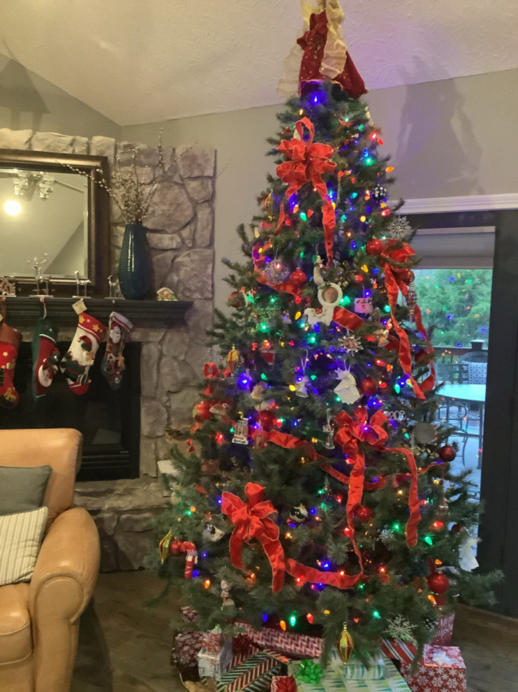 Houzz reader Kf_penn says of the holidays, “My favorite time of year,” and it’s clear because Kf_penn shared three full-size trees. The largest is this gorgeous tall tree in the great room.