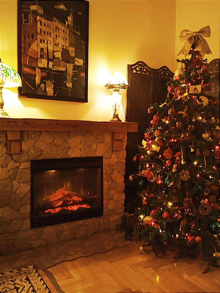 “I wanted to celebrate my first Christmas in my mountain chalet. I lugged a twin mattress, bed frame, two rattan chairs, a couple of my dining room chairs, antique English bar cabinet, kitchen stuff and my Christmas tree up here,” she wrote. “My Christmas tree has seven decades of memories with numerous old ornaments and the felt tree skirt my mother made in 1956. This skirt has been through floods, hurricanes and numerous moves. Even as it begins to fall apart I don’t plan to replace it. The pillow on the chair was painted by my great-aunt, who was born in 1850!