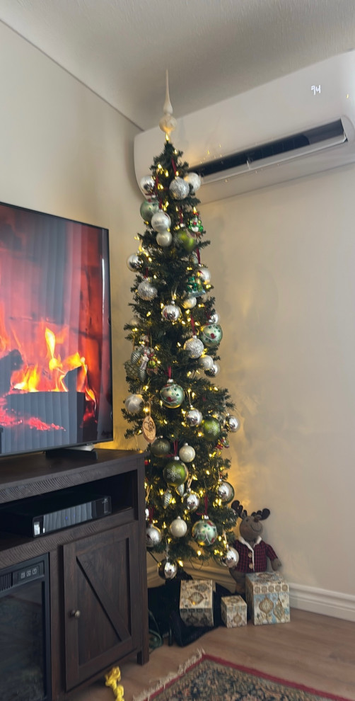 Skinny trees like those have really caught on as a trend this year. They can fit into tight spaces and don’t require moving a lot of heavy furniture to accommodate them. Houzz user lcdsmith dubbed this tall and lean tree their condo-style tree.