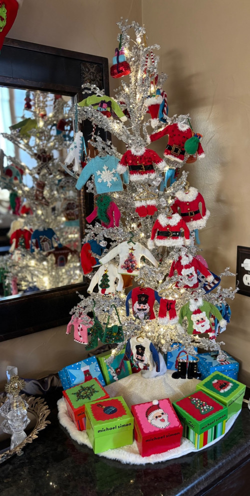 “I have several Christmas trees, but one of my favorite is my little tree in the master bedroom filled with Michael Simon ornaments,” Susan Cohlmia wrote. “I have collected over many years! So cheery every morning.”