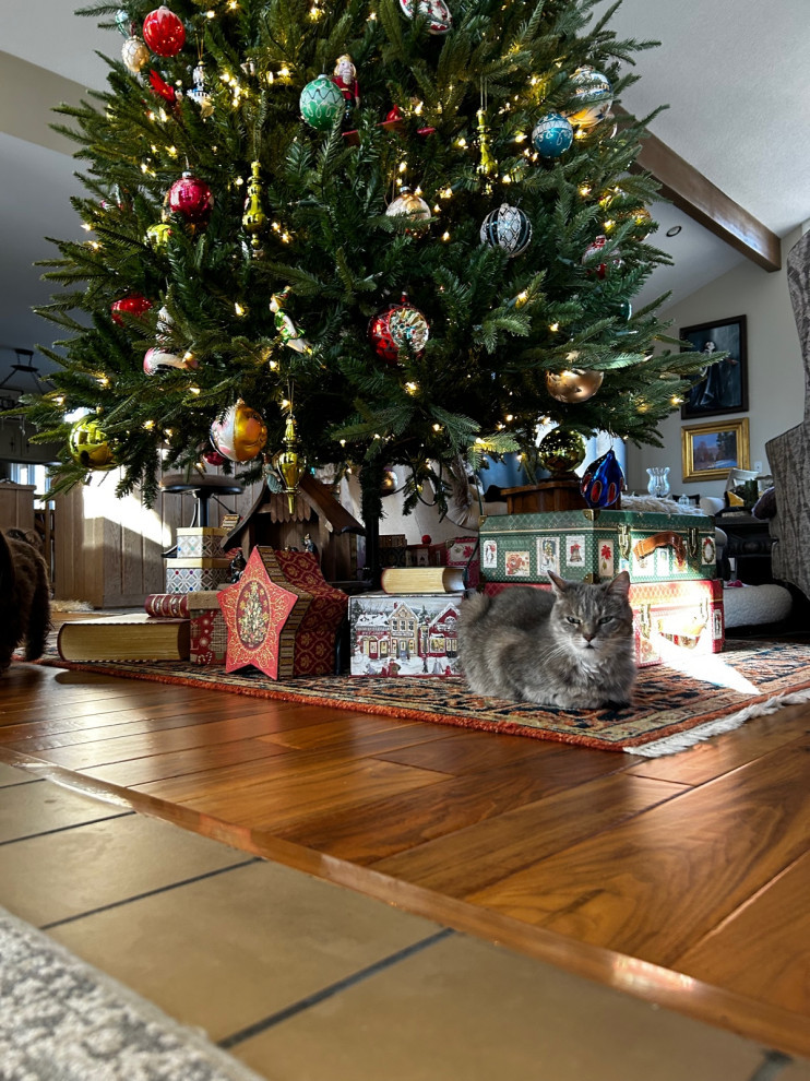 Houzz reader Let it Rock also celebrated being in a new home with a Christmas tree. “Went a bit crazy and did a 12 foot Grand Duchess tree and love how it turned out,” they wrote. “Many presents under the tree now and a 2024 ornament to celebrate our first Christmas here!”