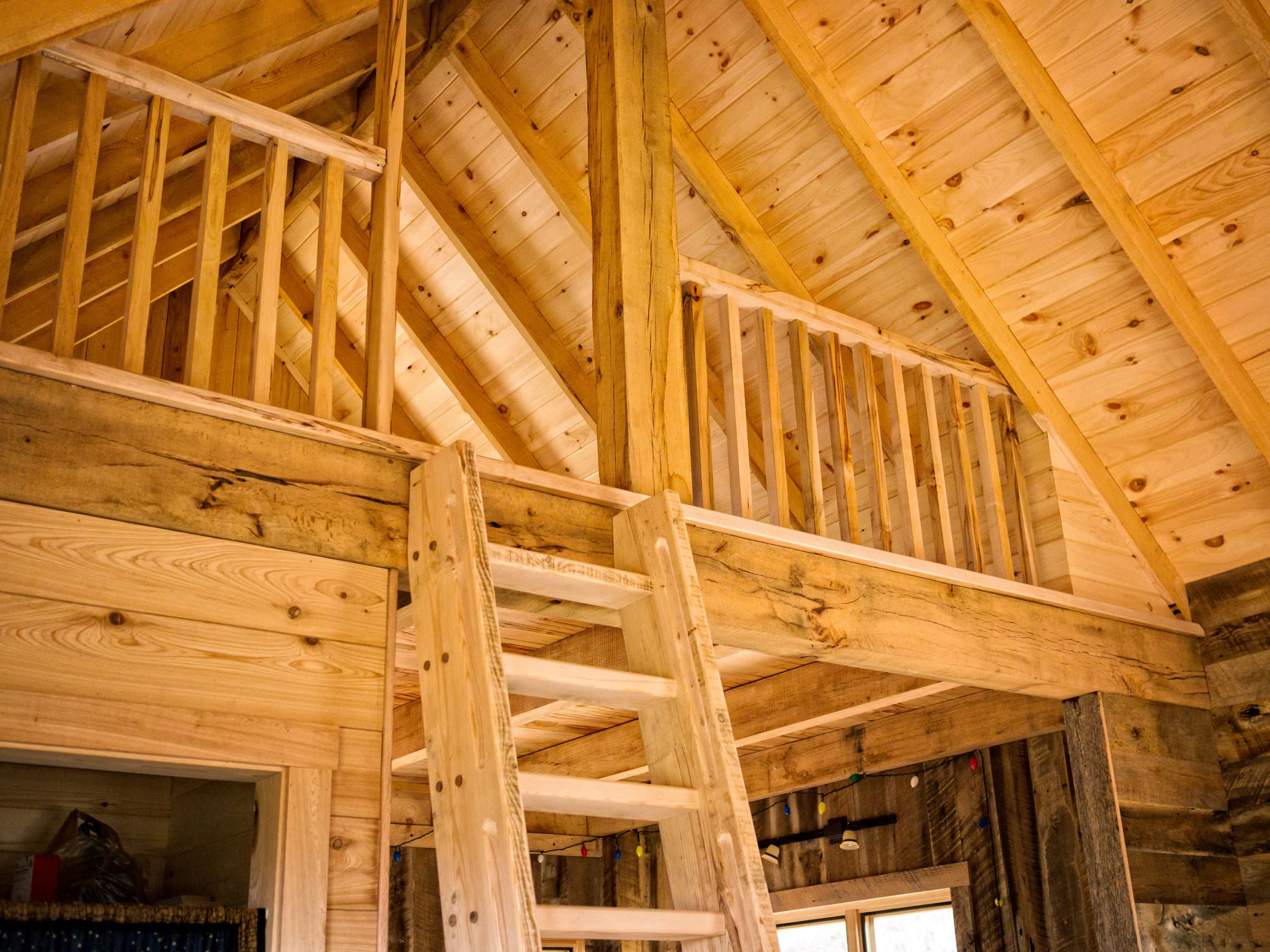 The Brittens sought to use everything that came to the site. The ship ladder is made of two leftover hemlock rafters.