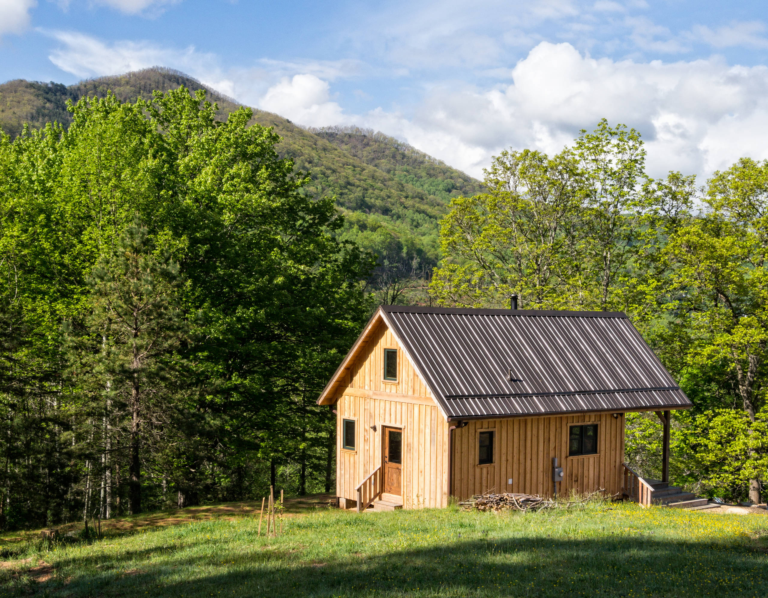 The Brittens also built a rustic weekend cabin for themselves, where they could retreat to when not running their photo gallery in Gatlinburg, Tennessee. The style is a throwback to old-fashioned cabins in the area, with a steep roof and simple all-wood design. “We wanted it to echo the flavor of an Appalachia hillbilly cabin, though more comfortable," William Britten says. "This is a modern version of that."