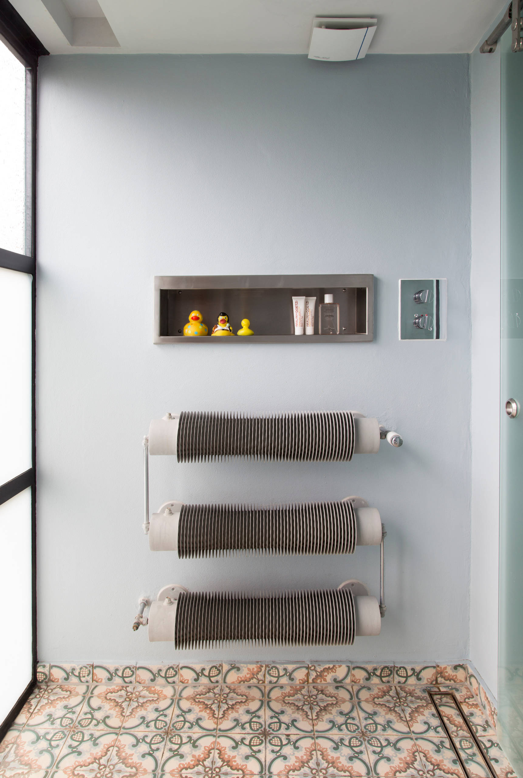 “These crazy radiators are usually used for greenhouses,” Mel says. “The room is next to the outside wall, and I really wanted it to function in the winter – plus they’re quite fun.”