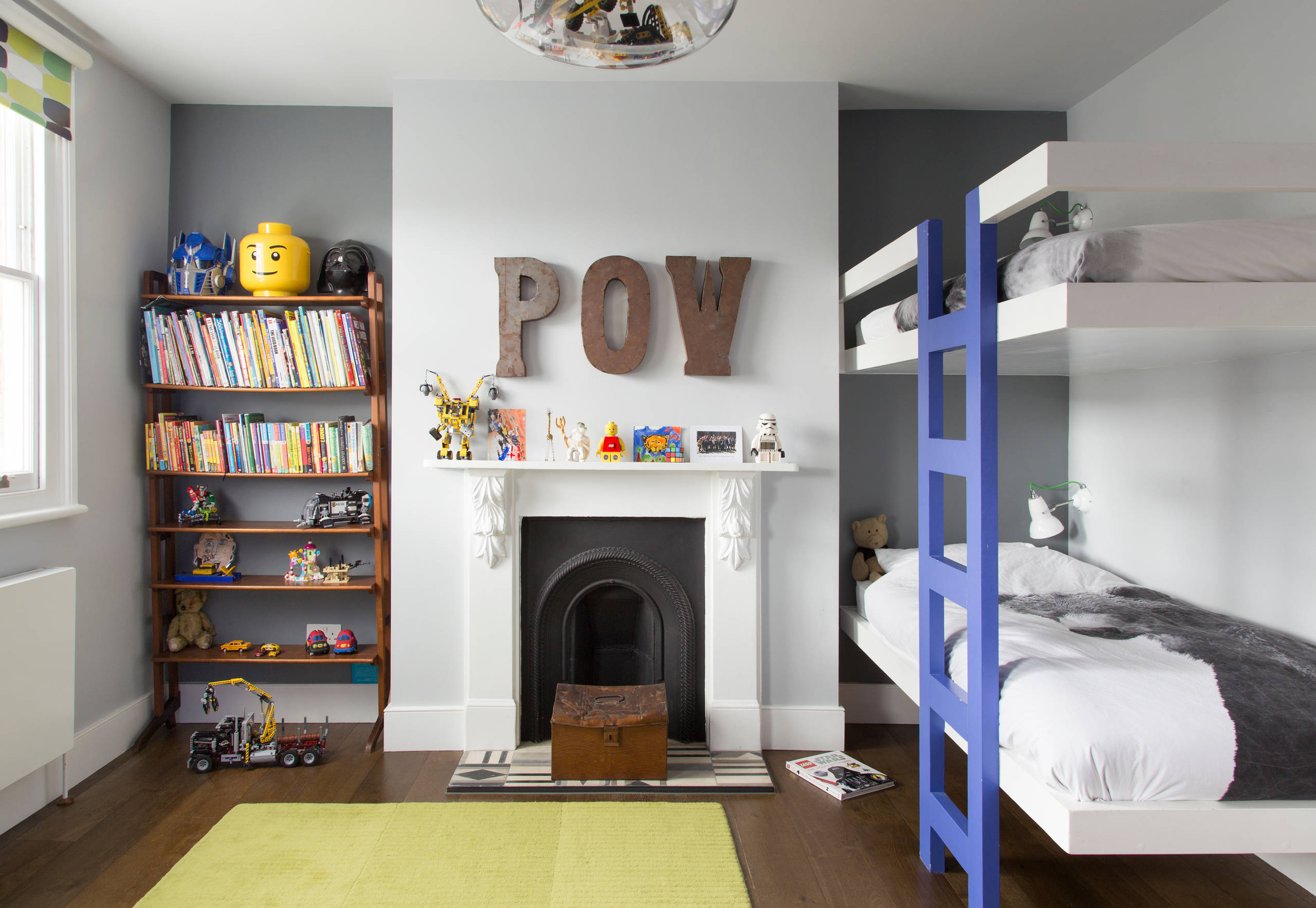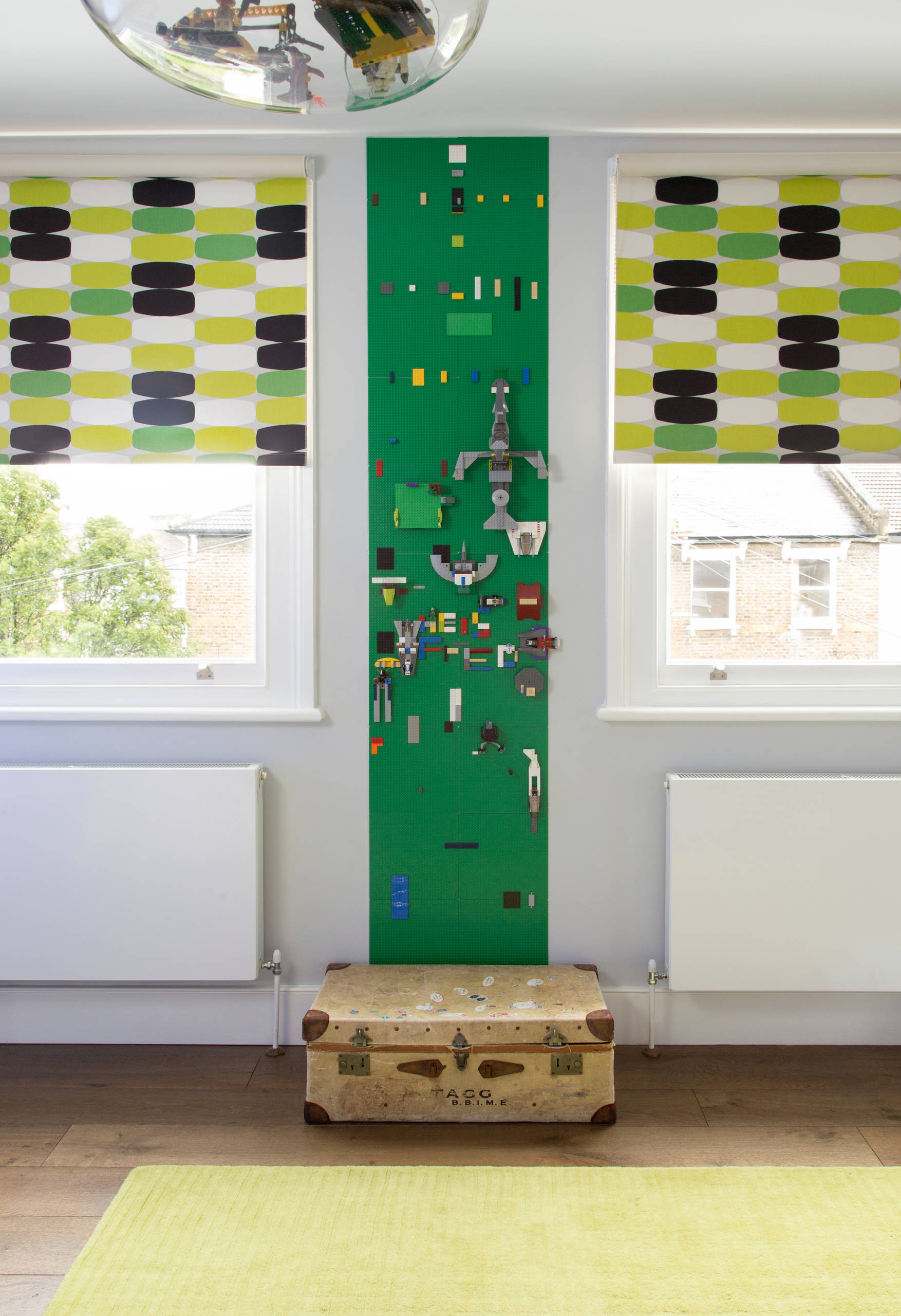 Lego base panels have been attached to the wall, as Mel’s younger son is a big fan of the building blocks. A vintage suitcase that belonged to Mel’s grandpa is ideal storage for the Lego pieces.