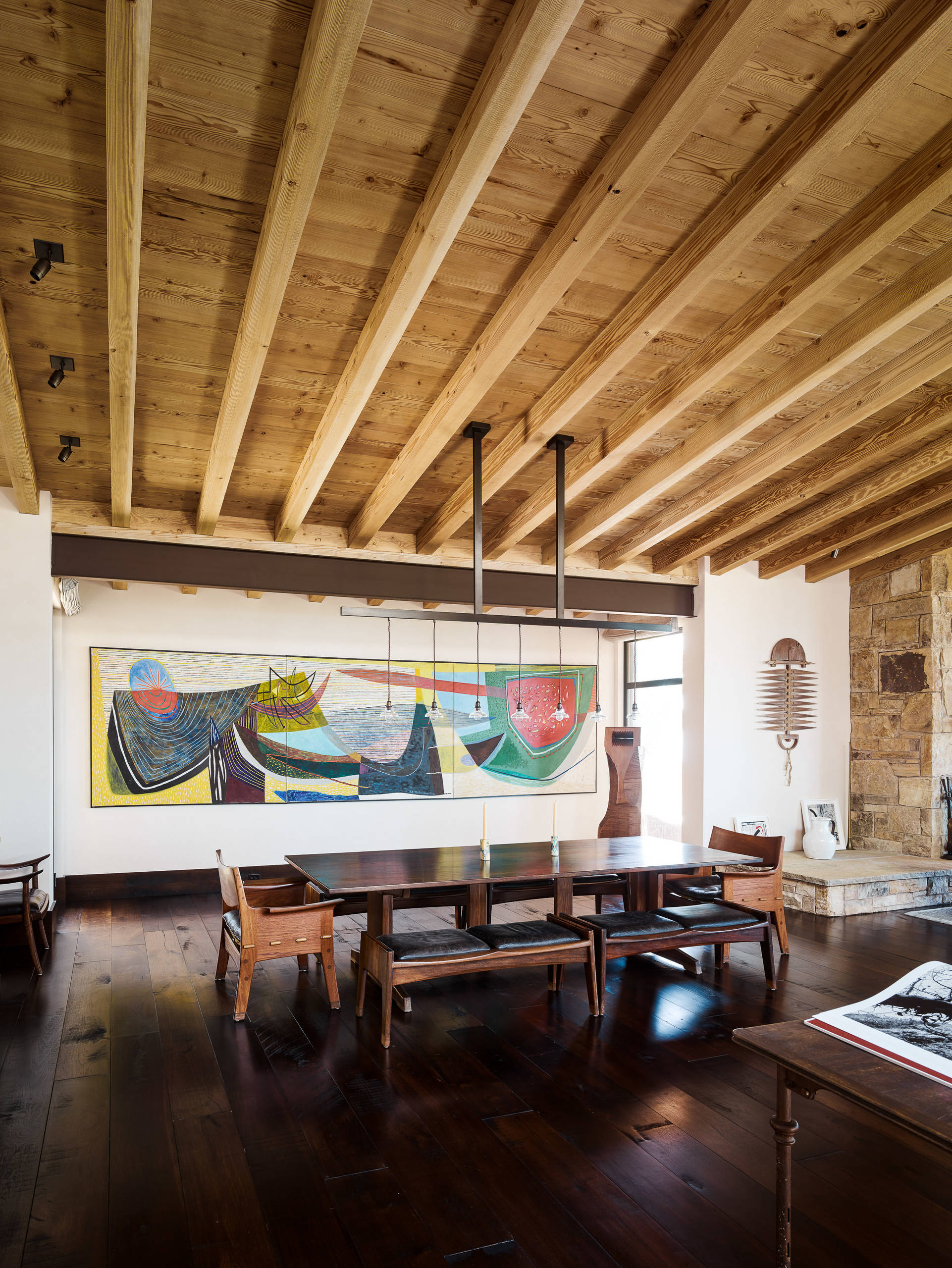 While the house was being designed, the homeowners purchased a large piece of abstract art specifically for the wall in the dining room. “It really defines the space,” Schicketanz says.