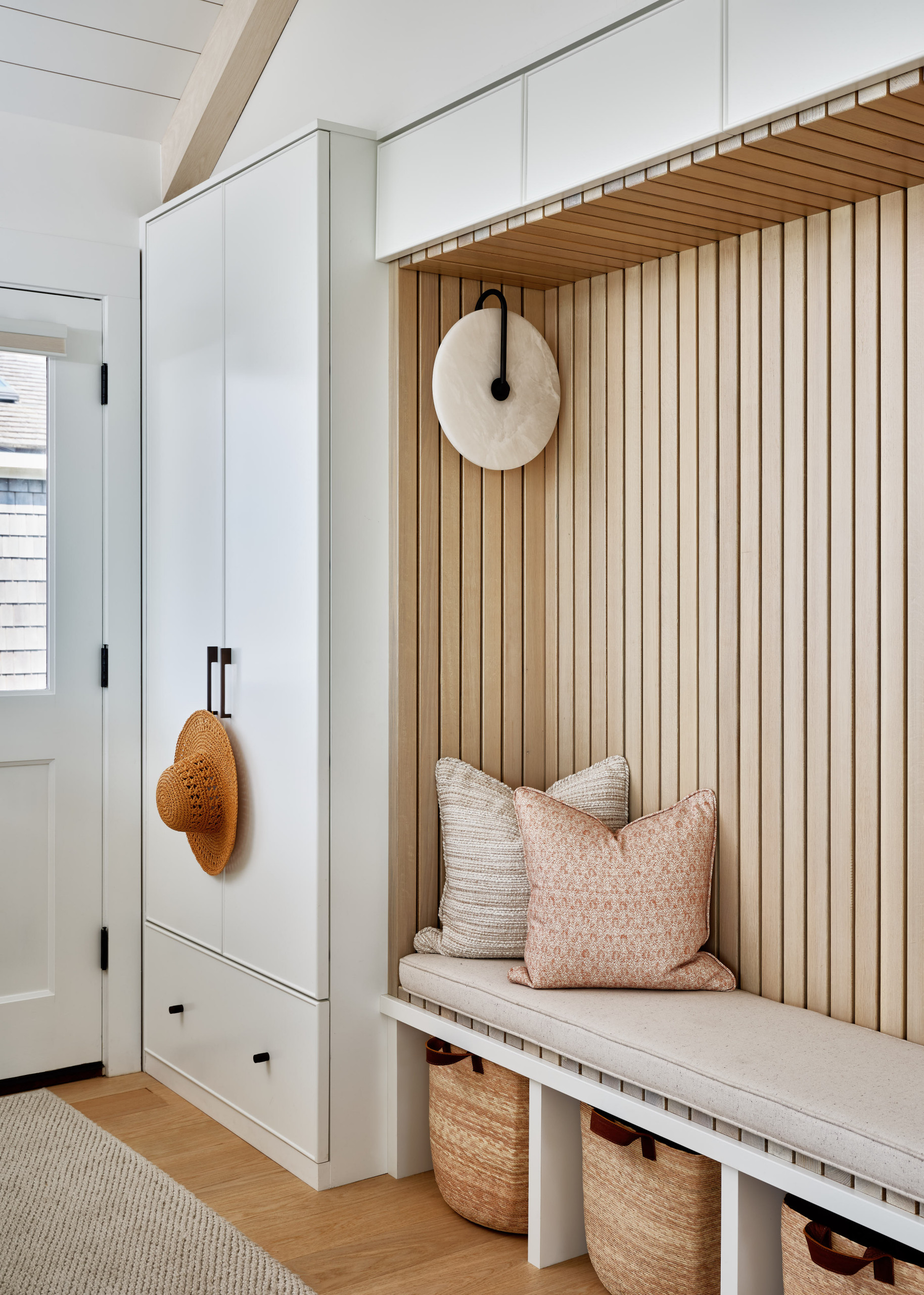 When the homeowners get back to the cottage, they tend to be on foot or on bike, so having a hardworking mudroom to catch sand and drop bags, shoes and jackets was a must. “Everything has its place,” Brown says. “To feel comfortable in such a small amount of square footage, everything has to feel right and has to be easy and functional.”