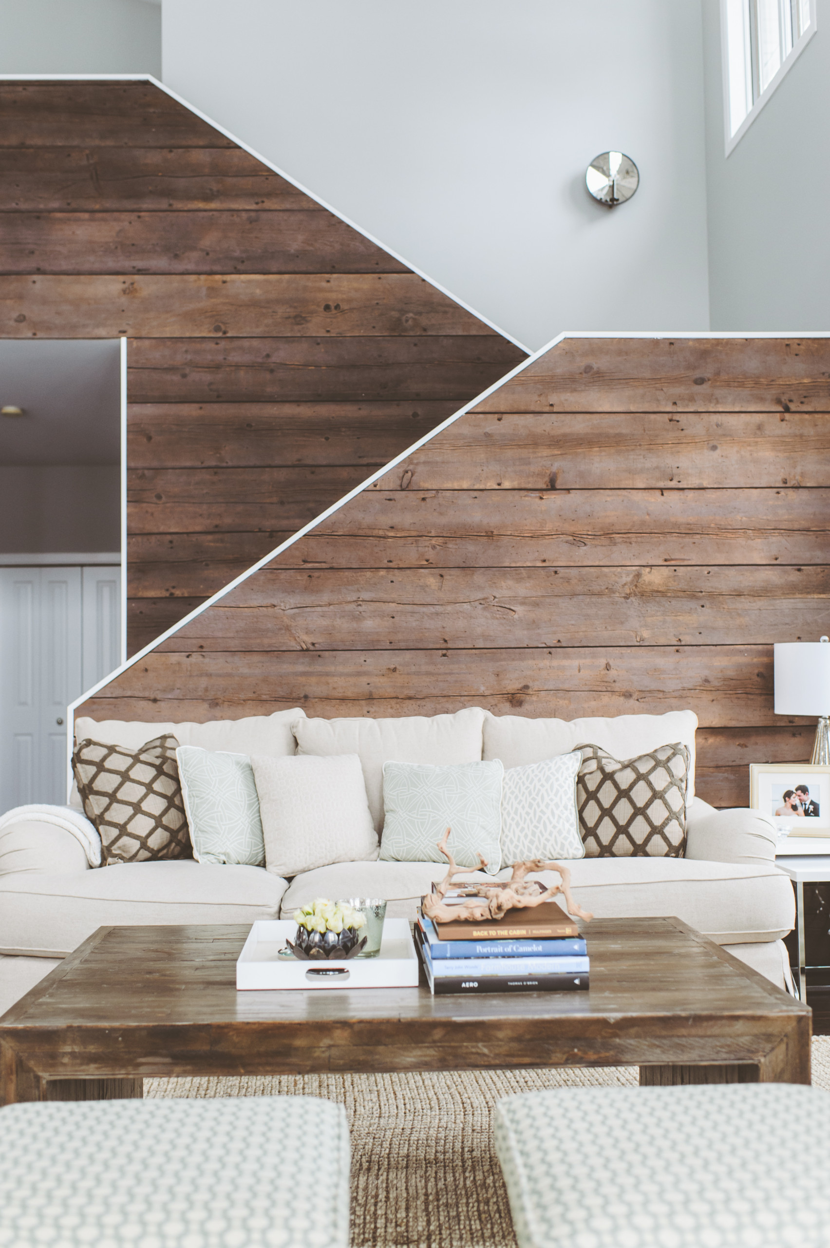 Dark wood on the floors picks up on the reclaimed wood accents and grounds the room.