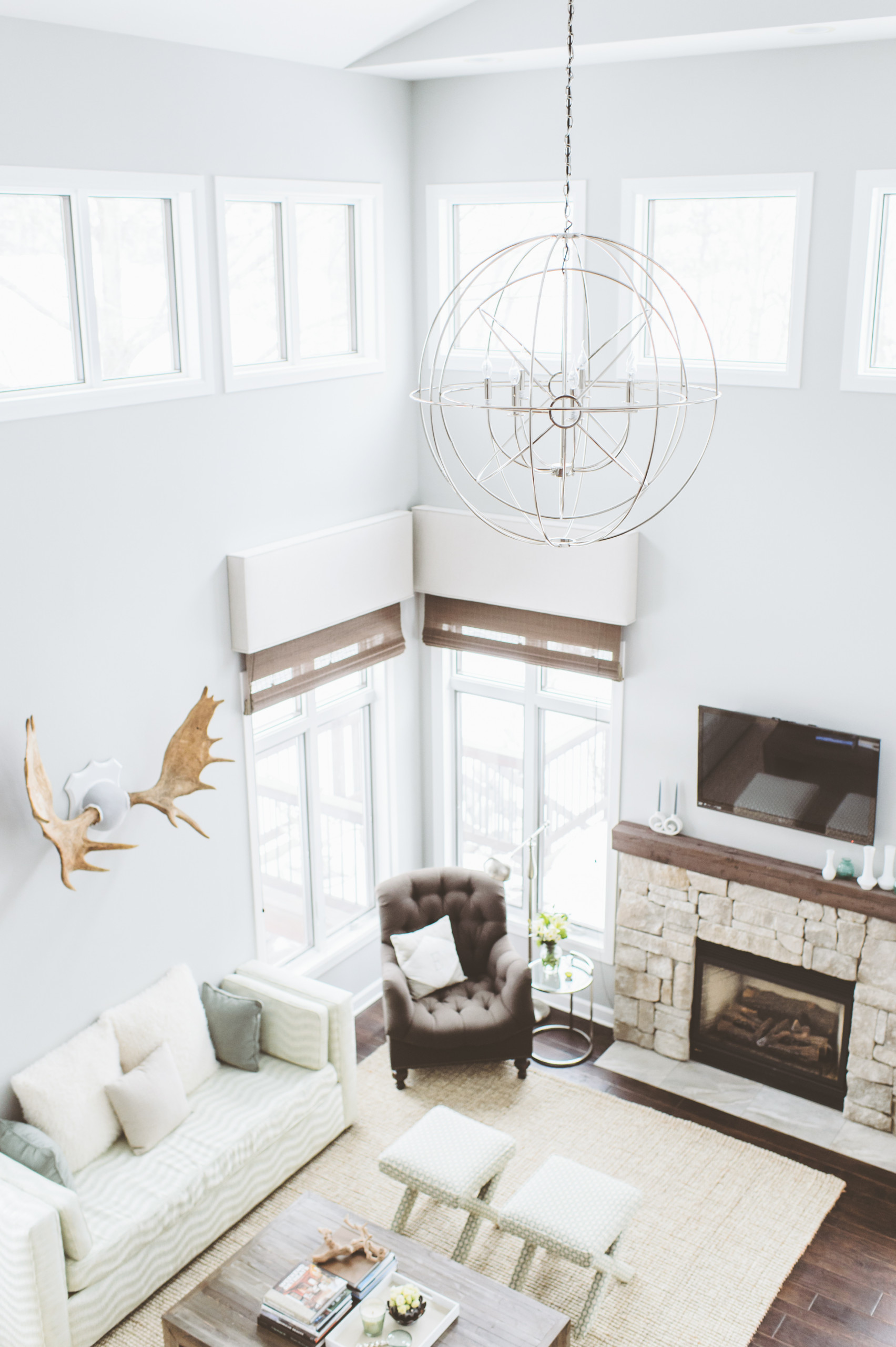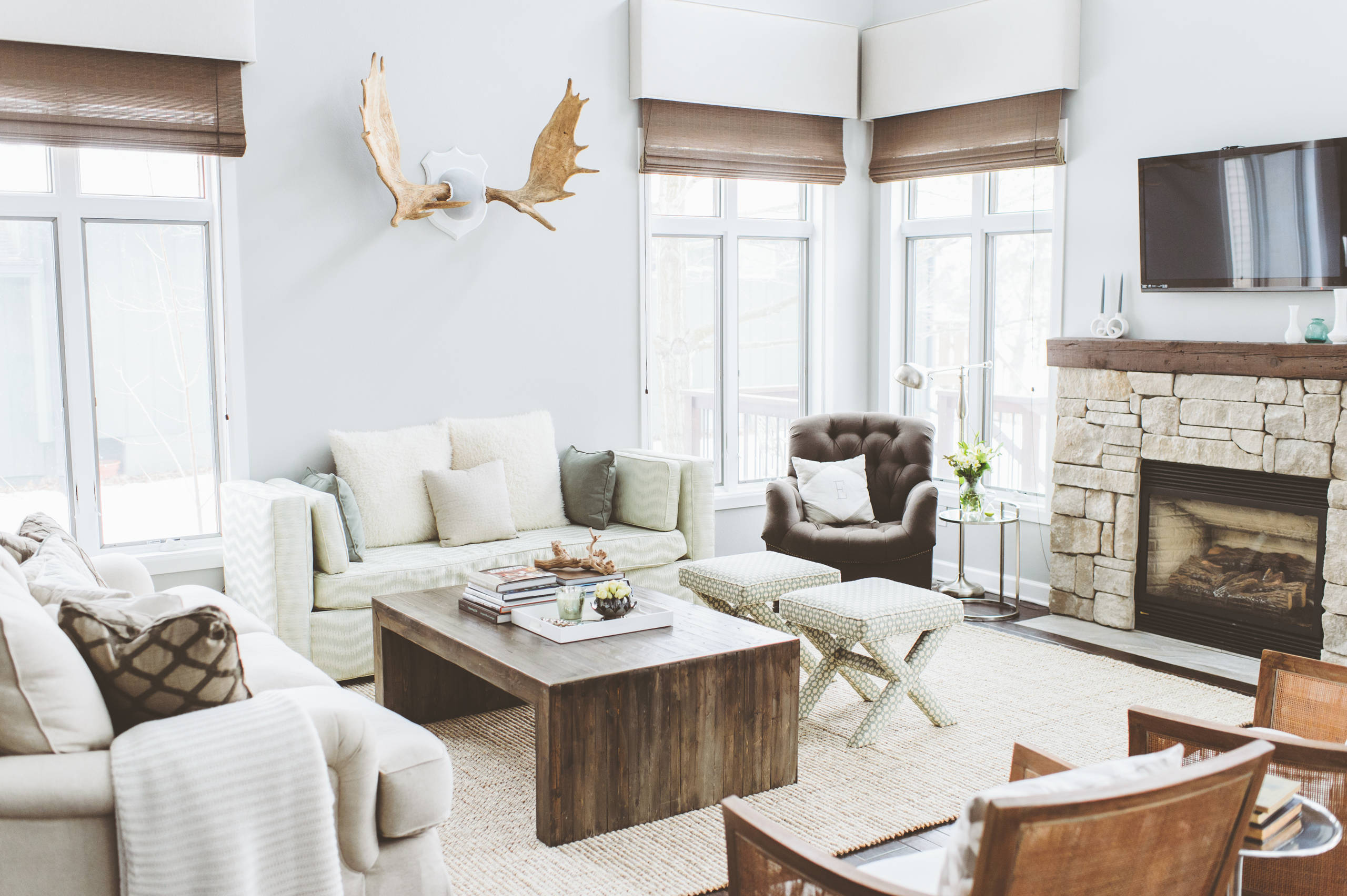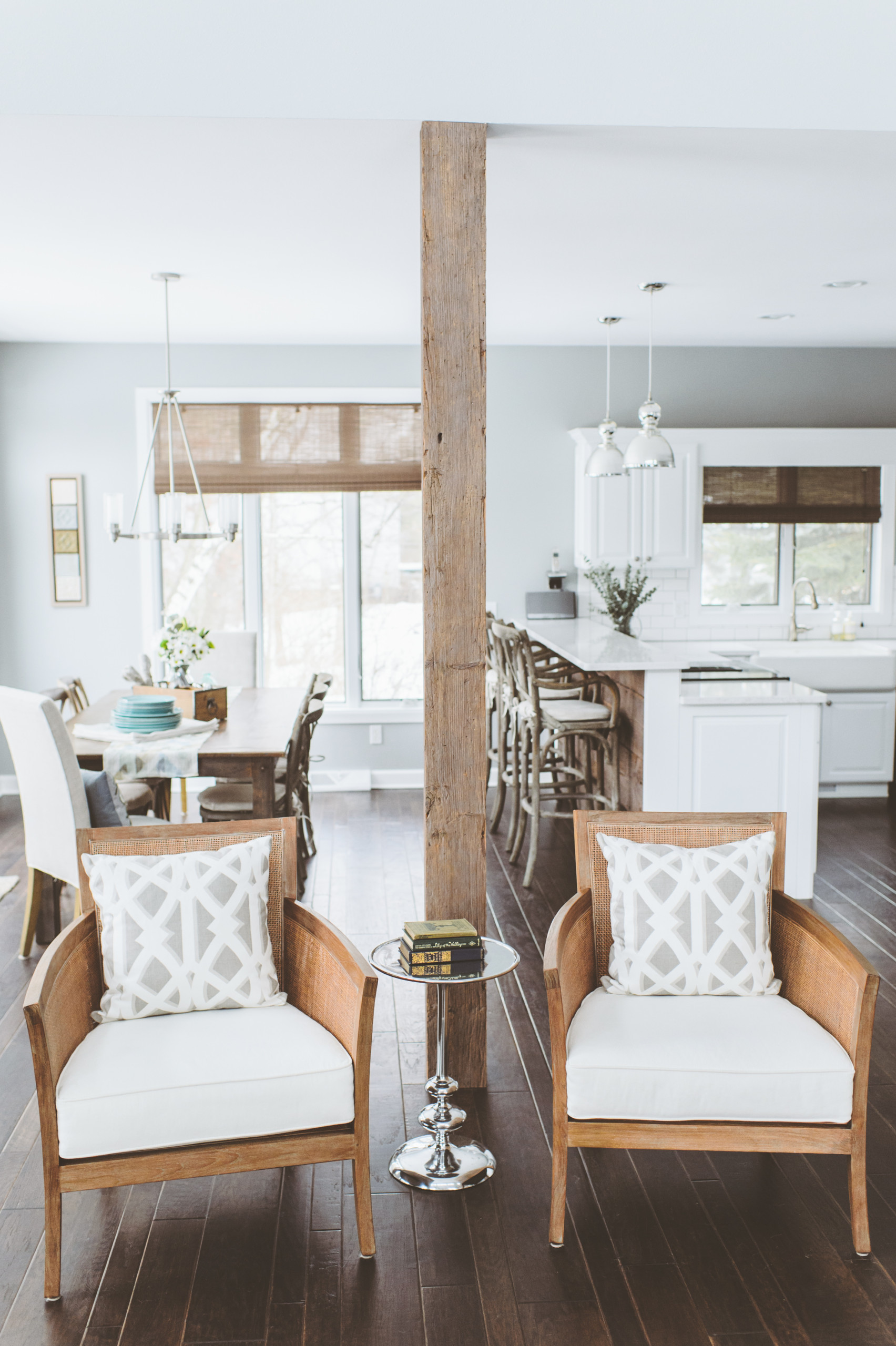 This dark lake house needed to lighten up. After several years of living with dark cherry cabinets and trim and outdated faux-painted walls, the owners were eager for their summer home on Lake Wisconsin to reflect their own style. They spend most of June, July and August here every year, and wanted to keep the rustic lake cottage touches but put them together in more modern way. Interior designer Lauren Piskula of [de]luxe design studio answered with a mix of materials like reclaimed barn wood, crisp white trim and clean lines for a fresh and inviting summer retreat.