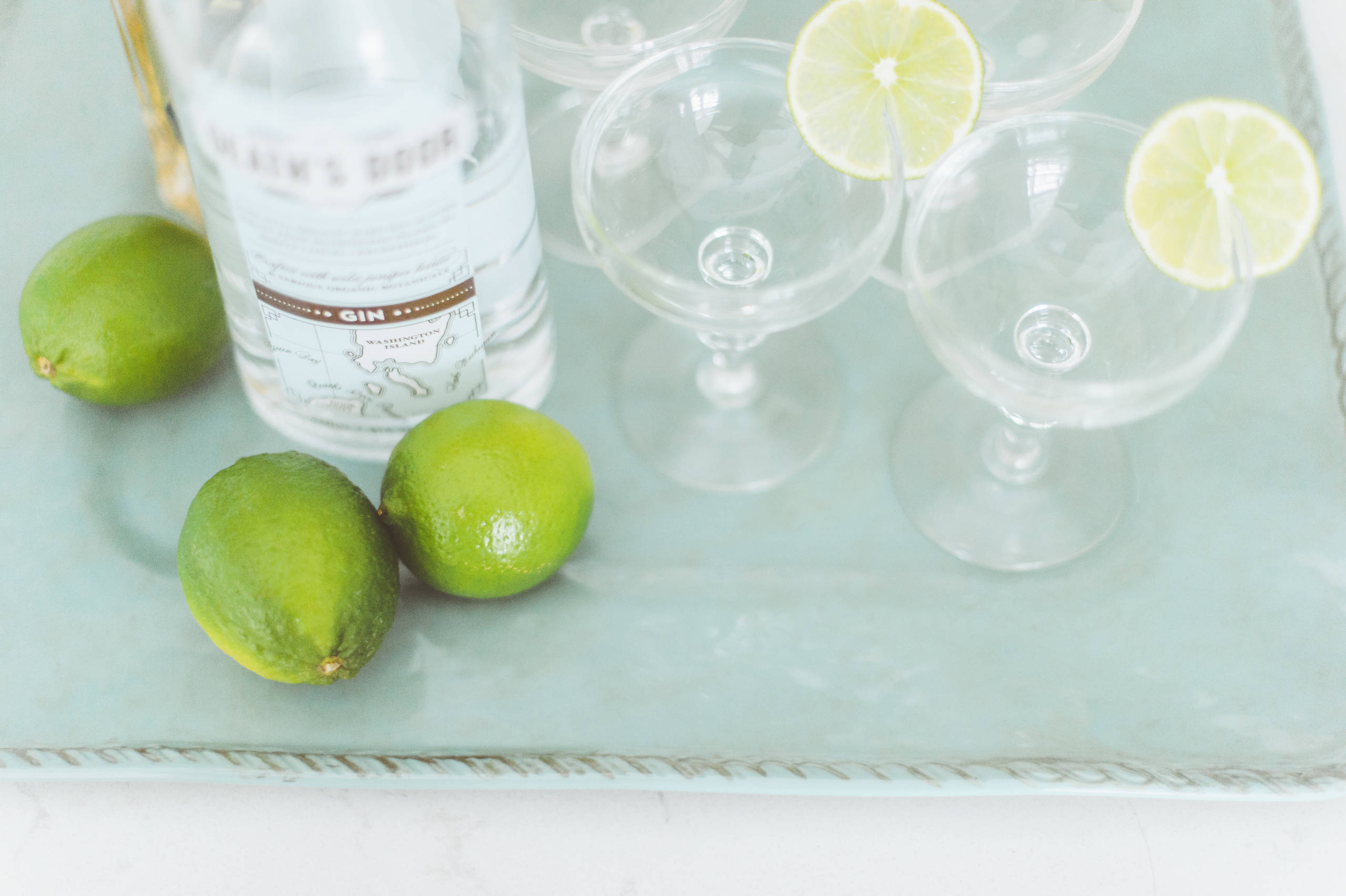 Wall paint: Stonington Gray HC-170, Benjamin Moore; bar stools: Madeleine Barstool, Restoration Hardware