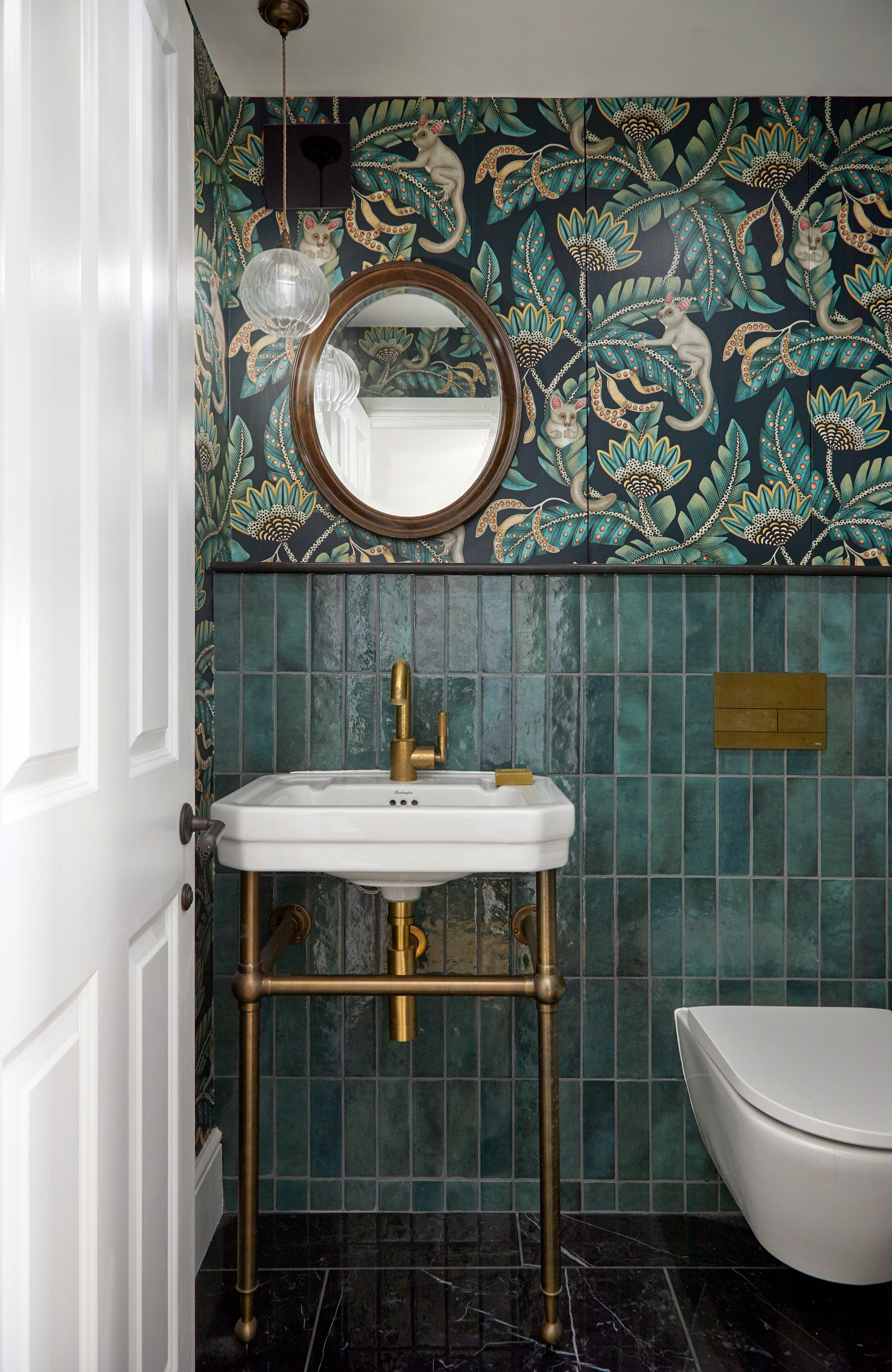“We put pattern on the hall floor, in the snug in the form of wallpaper [see next photo] and in this little cloakroom,” she says.