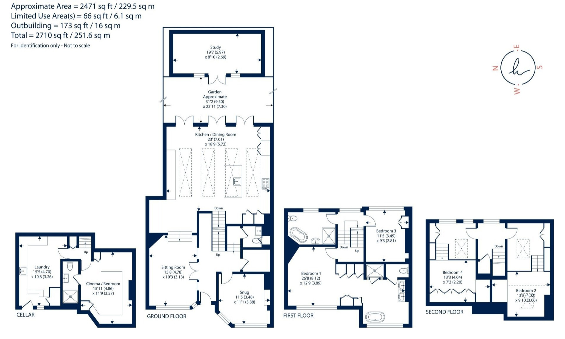 The house stretches over four floors, with a laundry room and cinema space in the basement, an extended ground floor, the first floor containing bedrooms and both bathrooms, and a loft space on the second floor with a further two bedrooms.