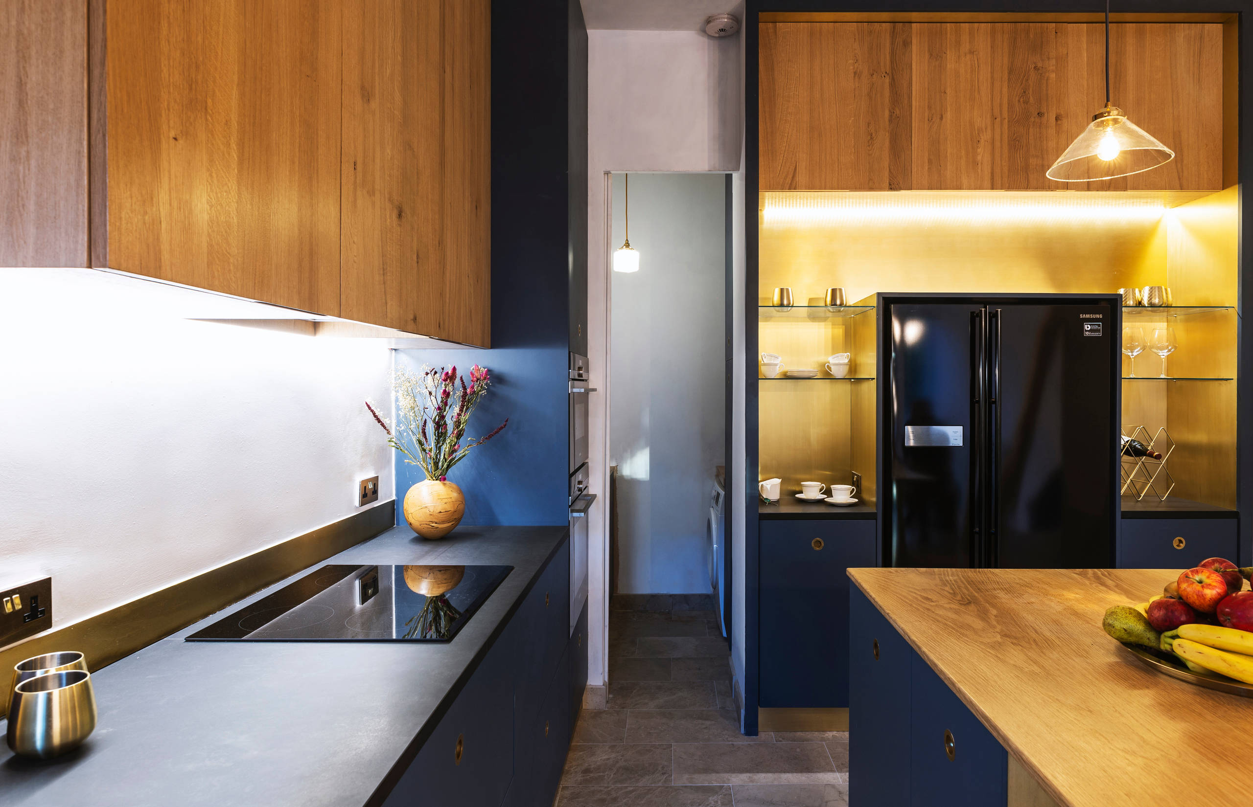 Local cabinetmaker John George made the kitchen cabinetry out of solid wood, which is durable enough to last for years. “We use English [woods] and often source them from a sustainable online hub called TreeStation,” he says.