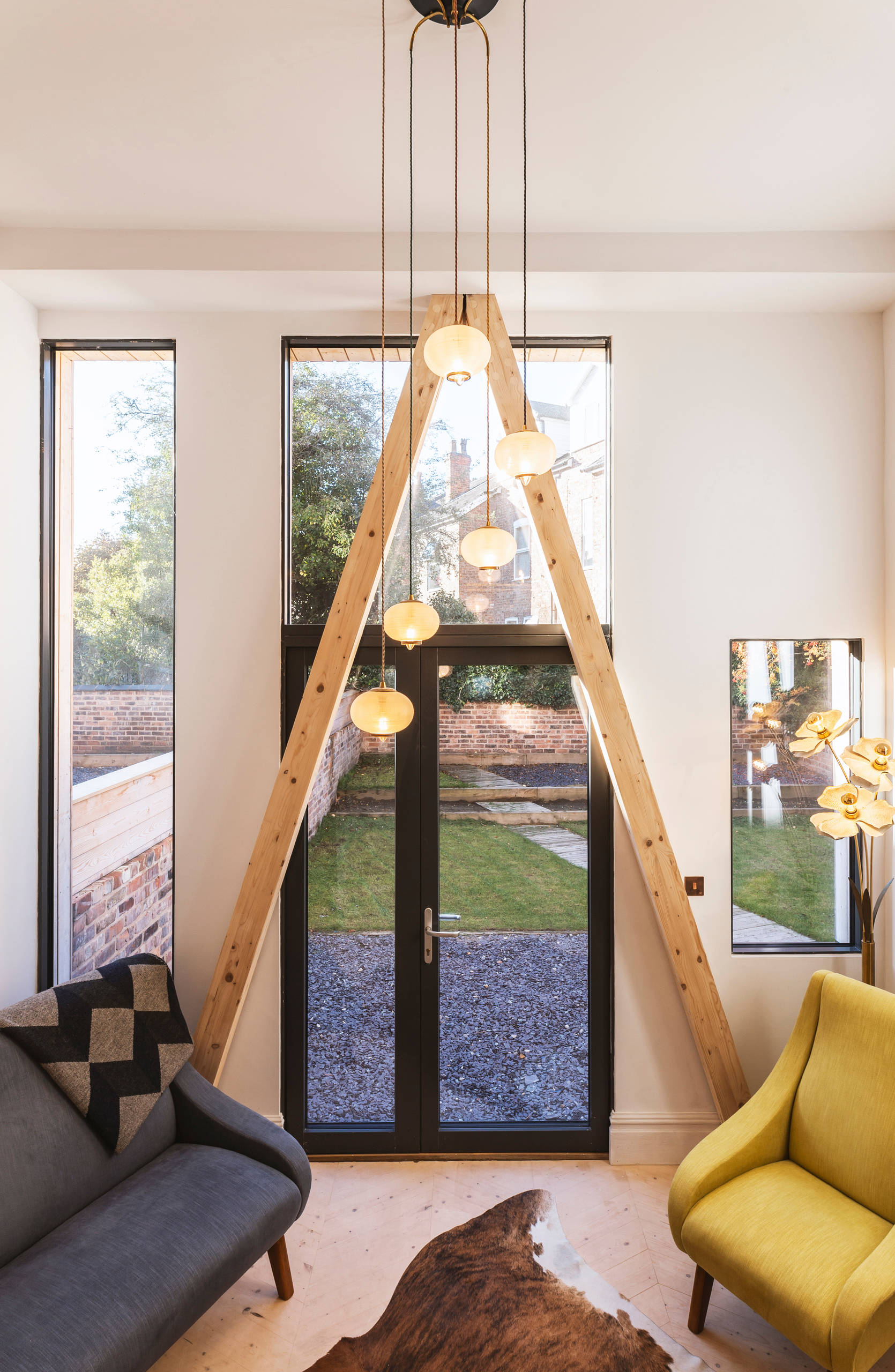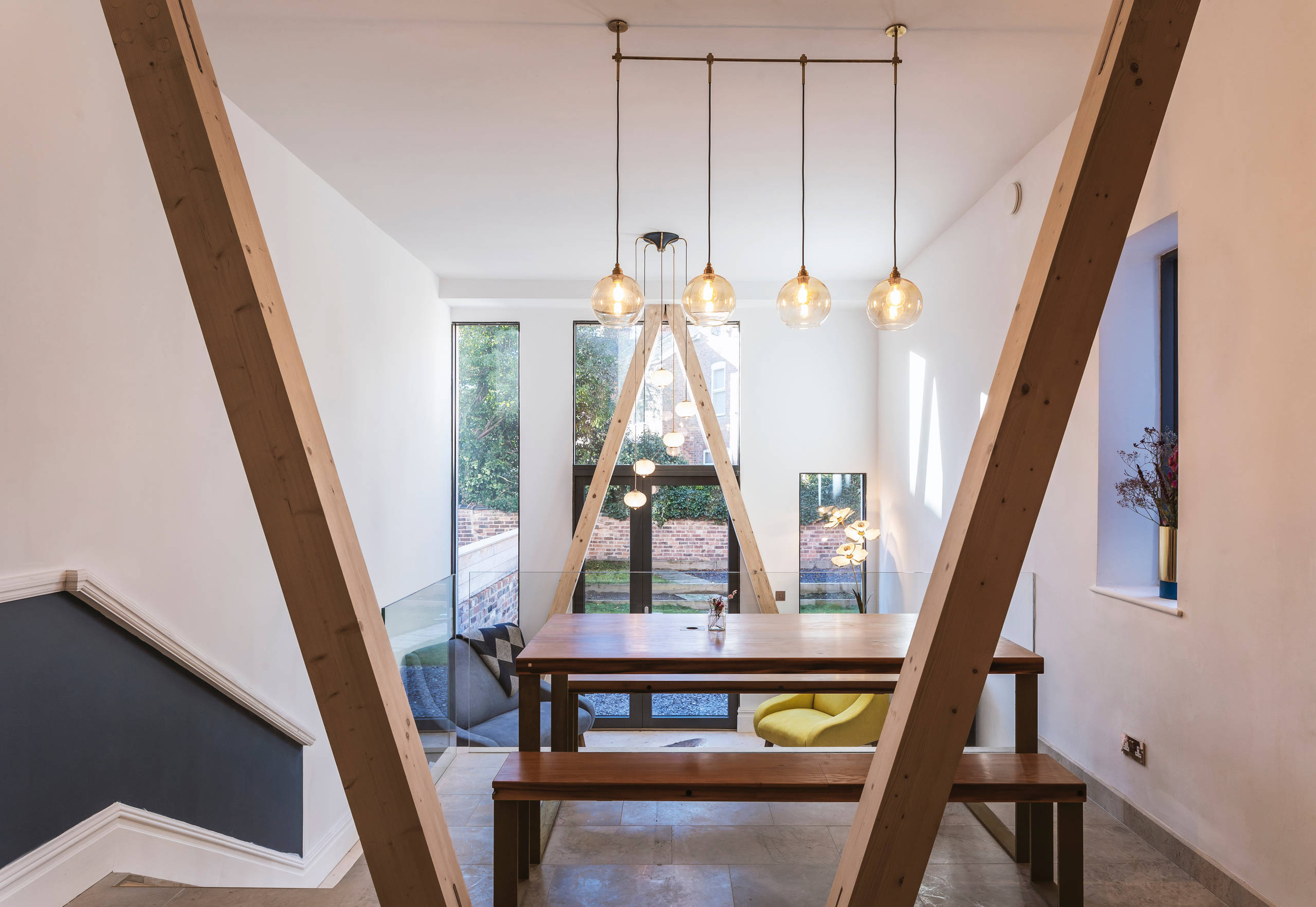 Architect Chris Rodgers of Guy Taylor Associates explains the stepped layout at the back of the townhouse: “The original ground-floor level was elevated high above the garden, and the slippery steps were not ideal for family living. So, the internal ground level was dropped to line up with the garden.”