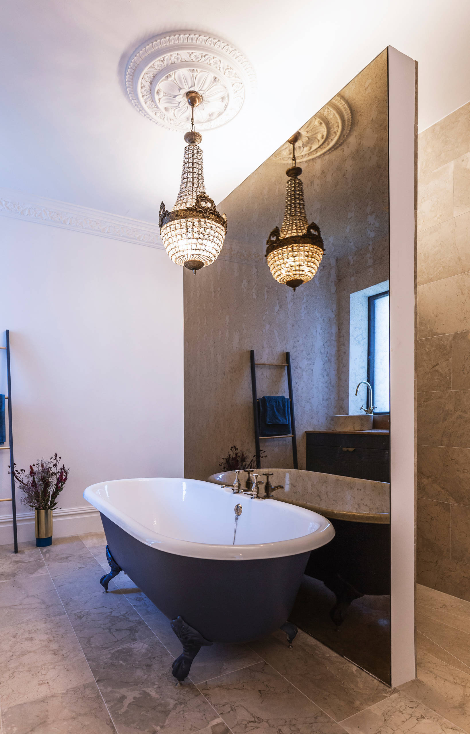 The chandeliers and pendants in all the rooms came from Agapanthus Interiors, a local company that restores and upcycles antique light fixtures.
