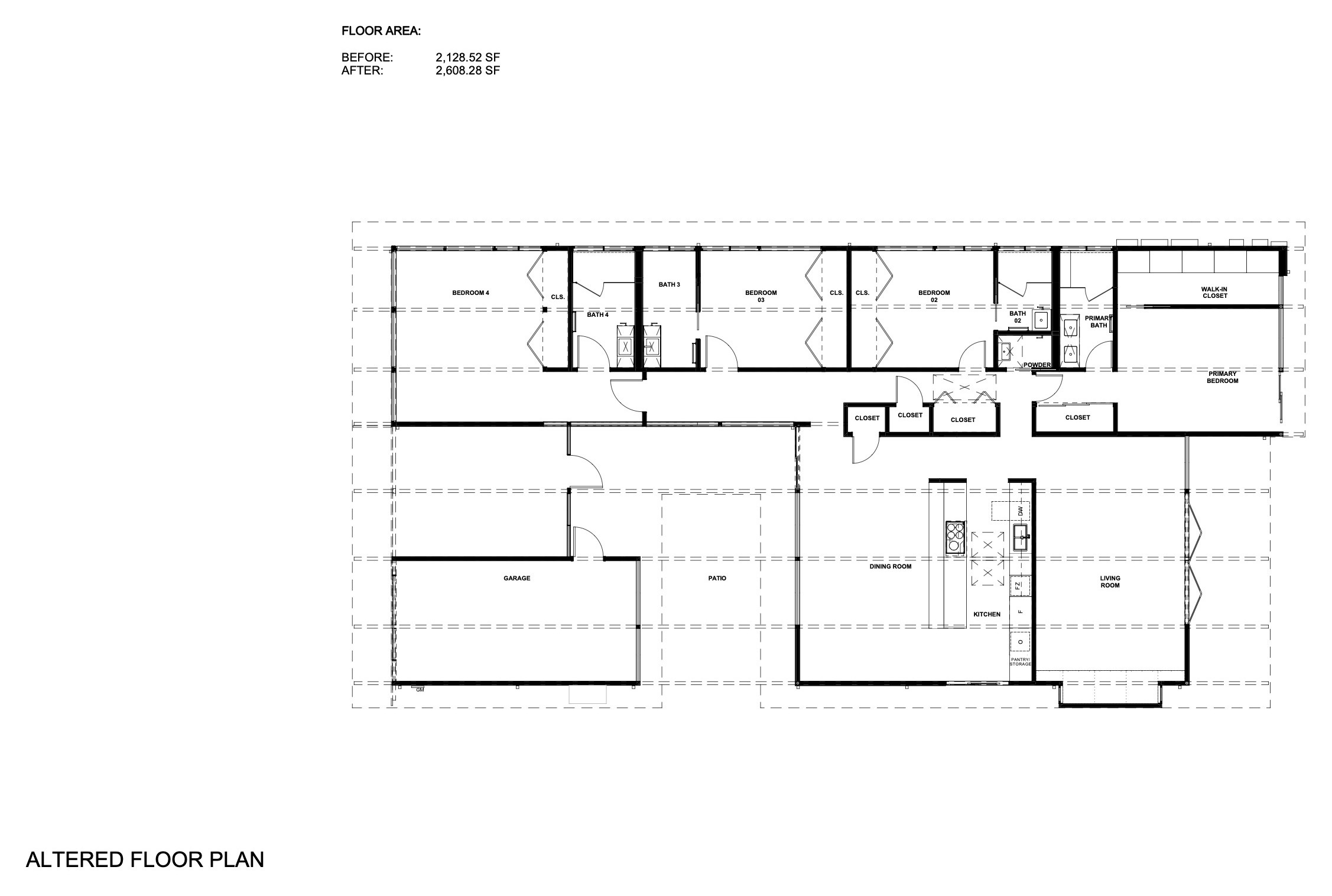 Scroll to the bottom to see the home’s existing and new floor plans.