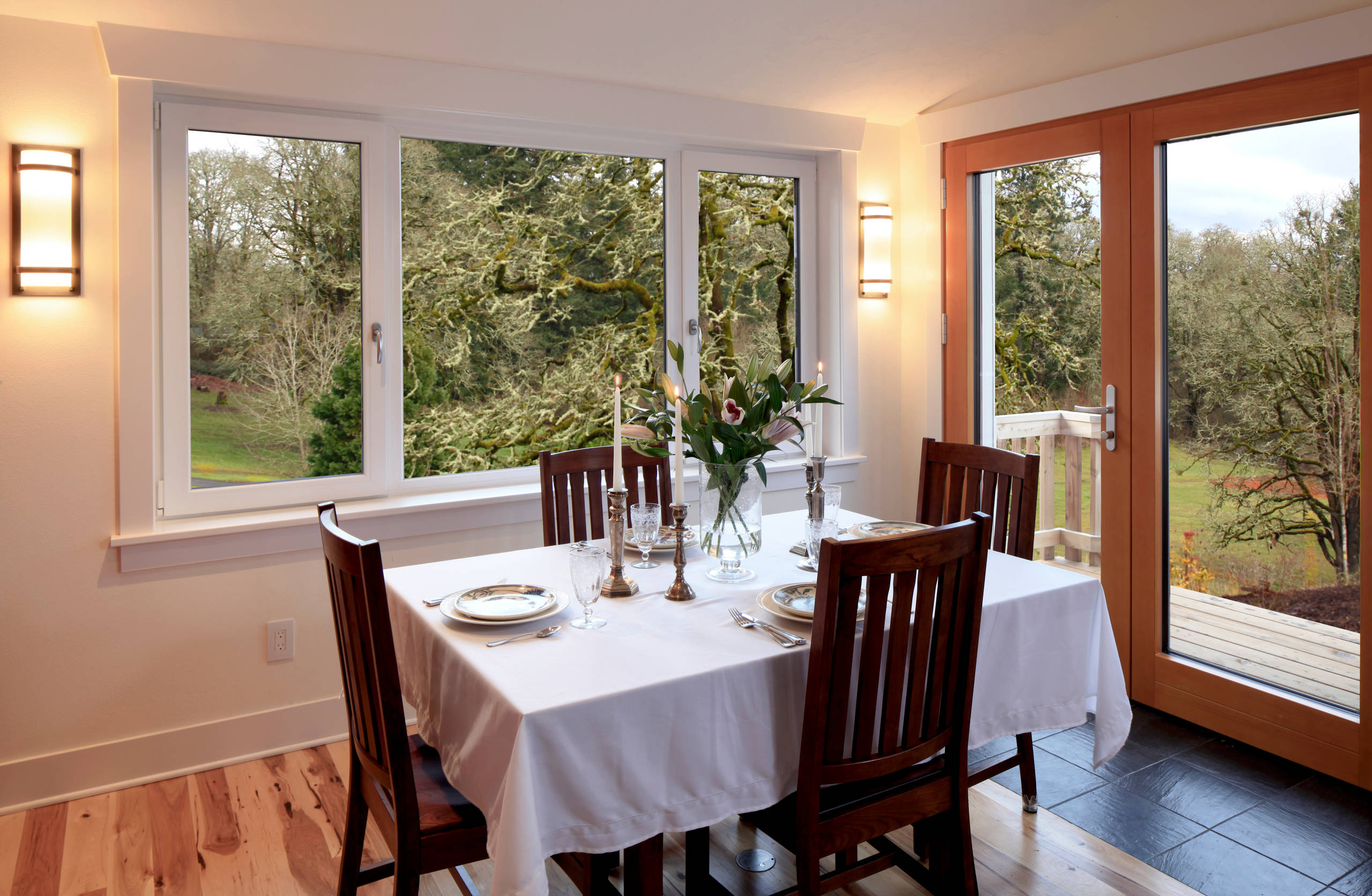 Sconces: Lavery Bay View, Minka; doors: Thermaclad, Zola
