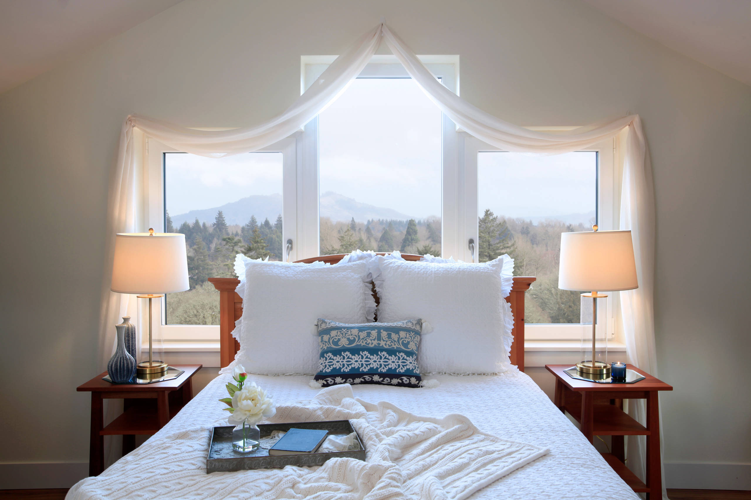 Guest bedroom. More triple-glazed tilt-turn windows light up the master bedroom, which has views all the way to Mount Washington.
