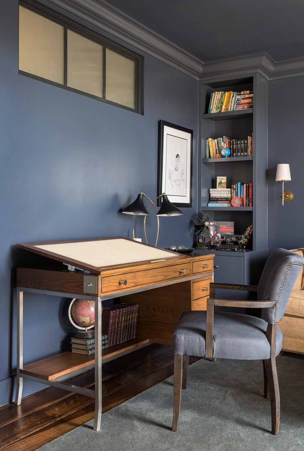 Tennant and Barber designed the desk, which tilts up to serve as an illustration table or a drafting table.