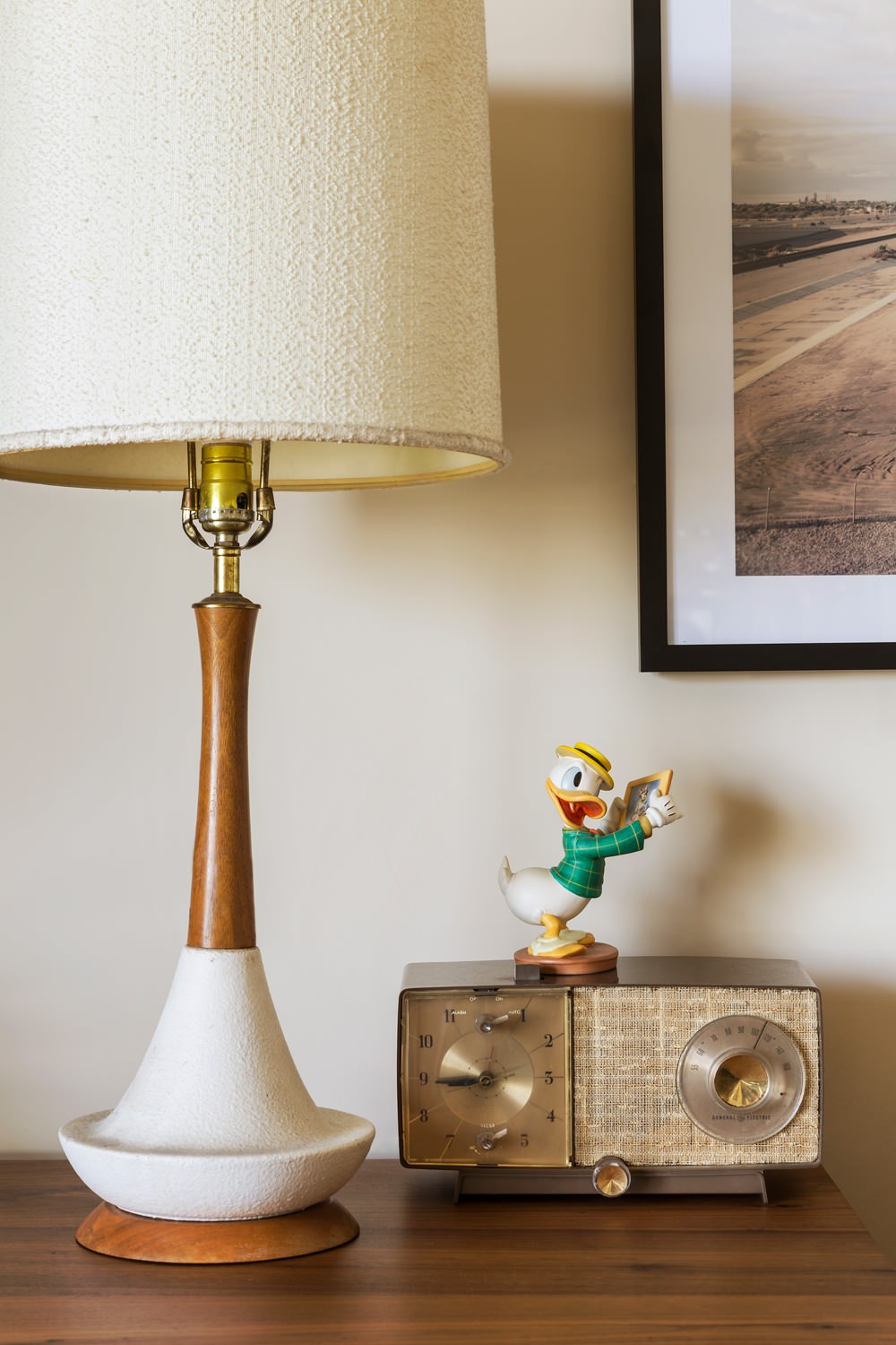 Tennant purchased the vintage lamp online and placed it atop the sideboard next to the client’s radio. “That radio and Donald Duck are a match made in heaven,” Tennant says.