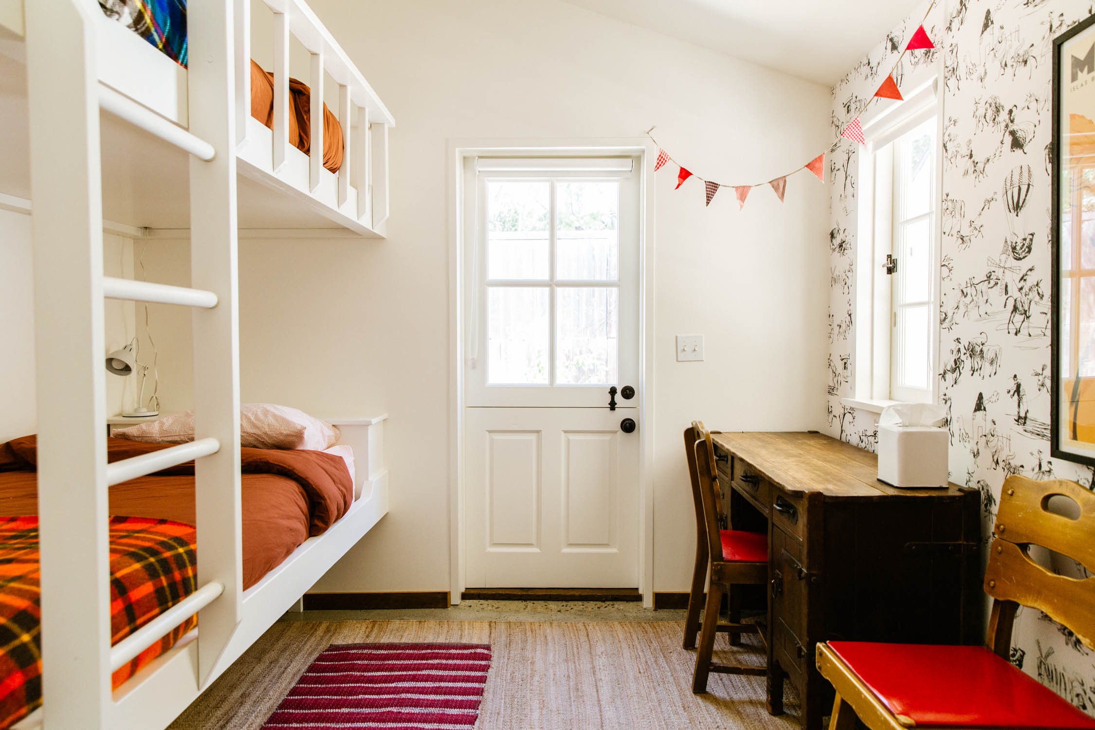 In Ojai, California, individual structures are transformed into a home with separate bunk and living spaces