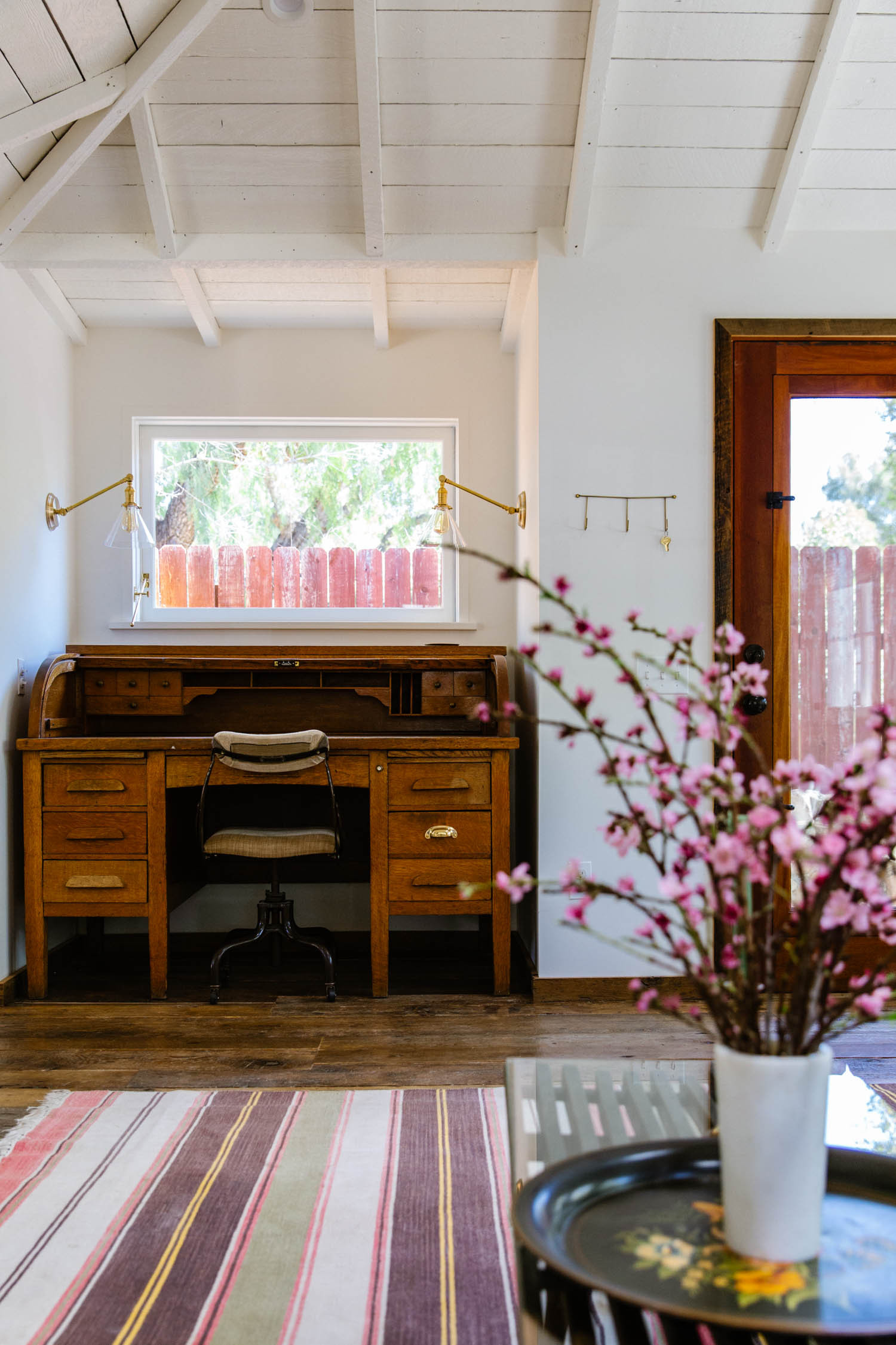 When Lewis lived in nearby Santa Barbara, she loved how her neighbors’ backyards were all connected, so the kids (including her three daughters) could run freely between their friends’ houses with a communal play space in between. So when she found the adjacent cottages being sold together in Ojai for a relatively affordable price, she was hooked on the idea of re-creating that feeling for her family.