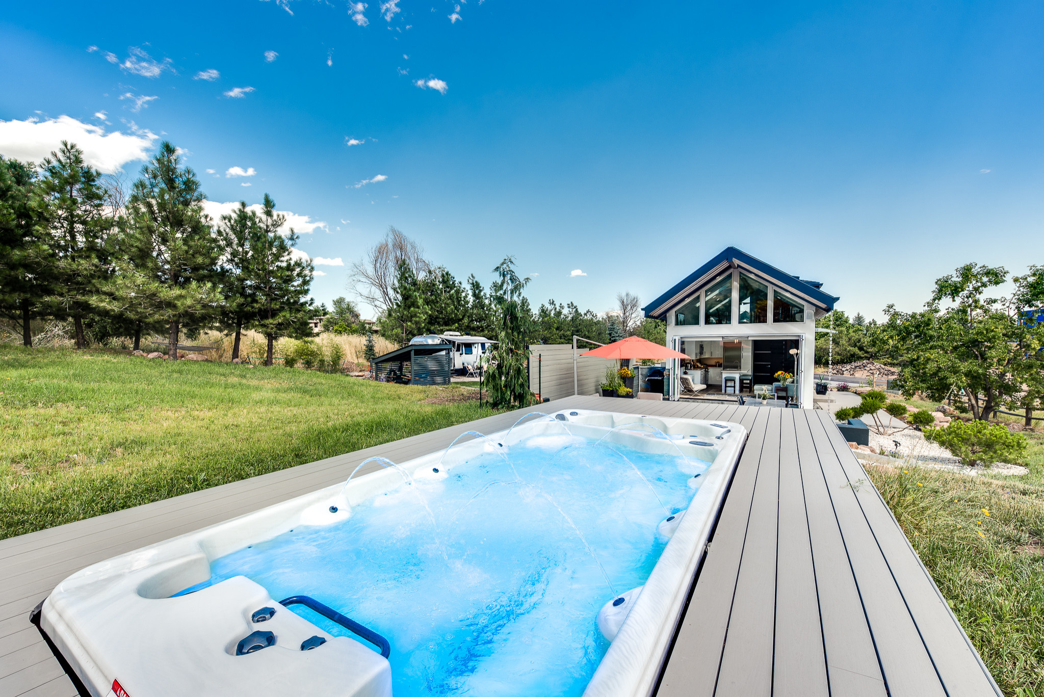 Decking: AZEK; pool: PowerPool, Maax Spas