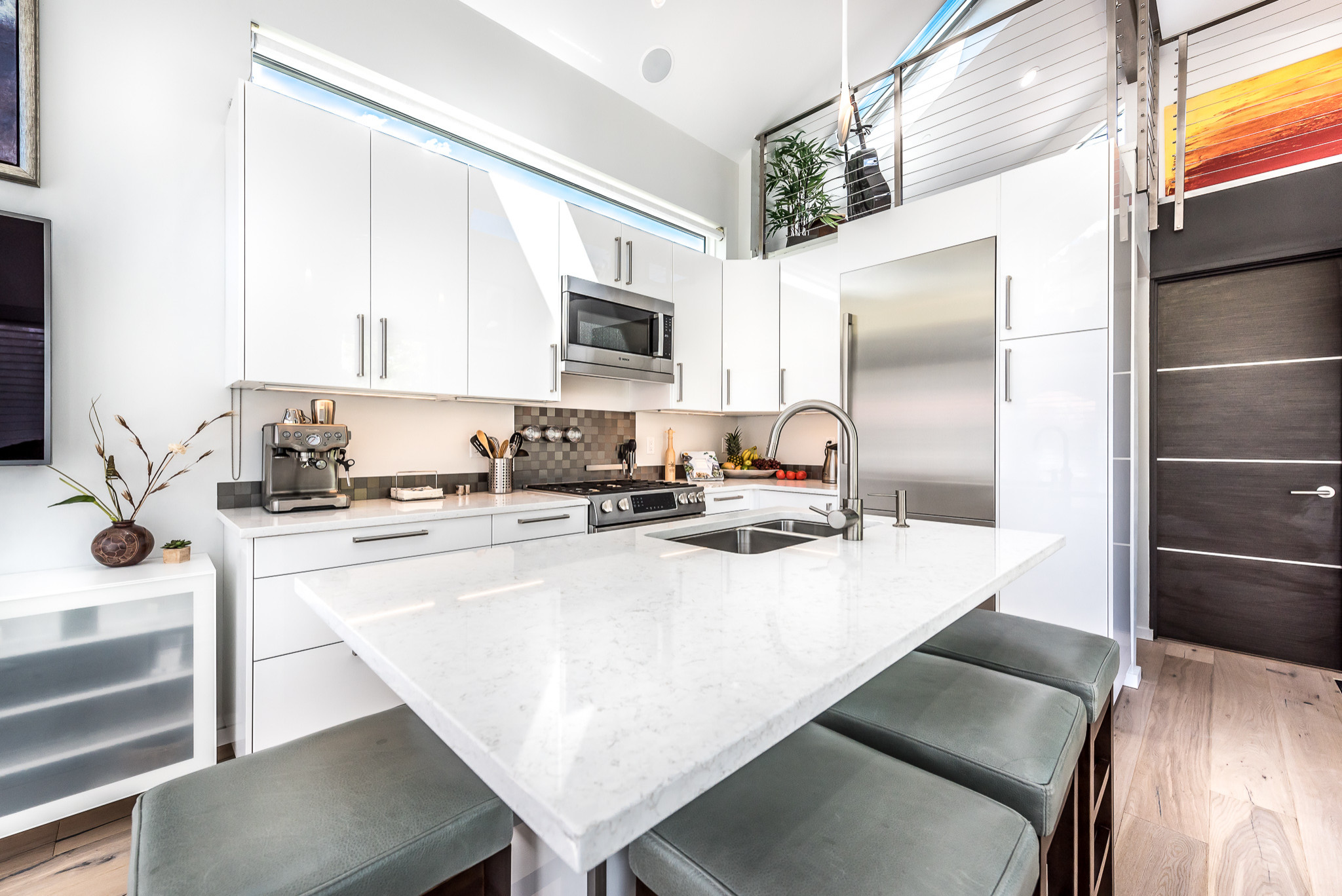 Appliances: Bosch; countertops: Arizona Tile; cabinets: Ikea; sink: Kohler; faucets: Hansgrohe