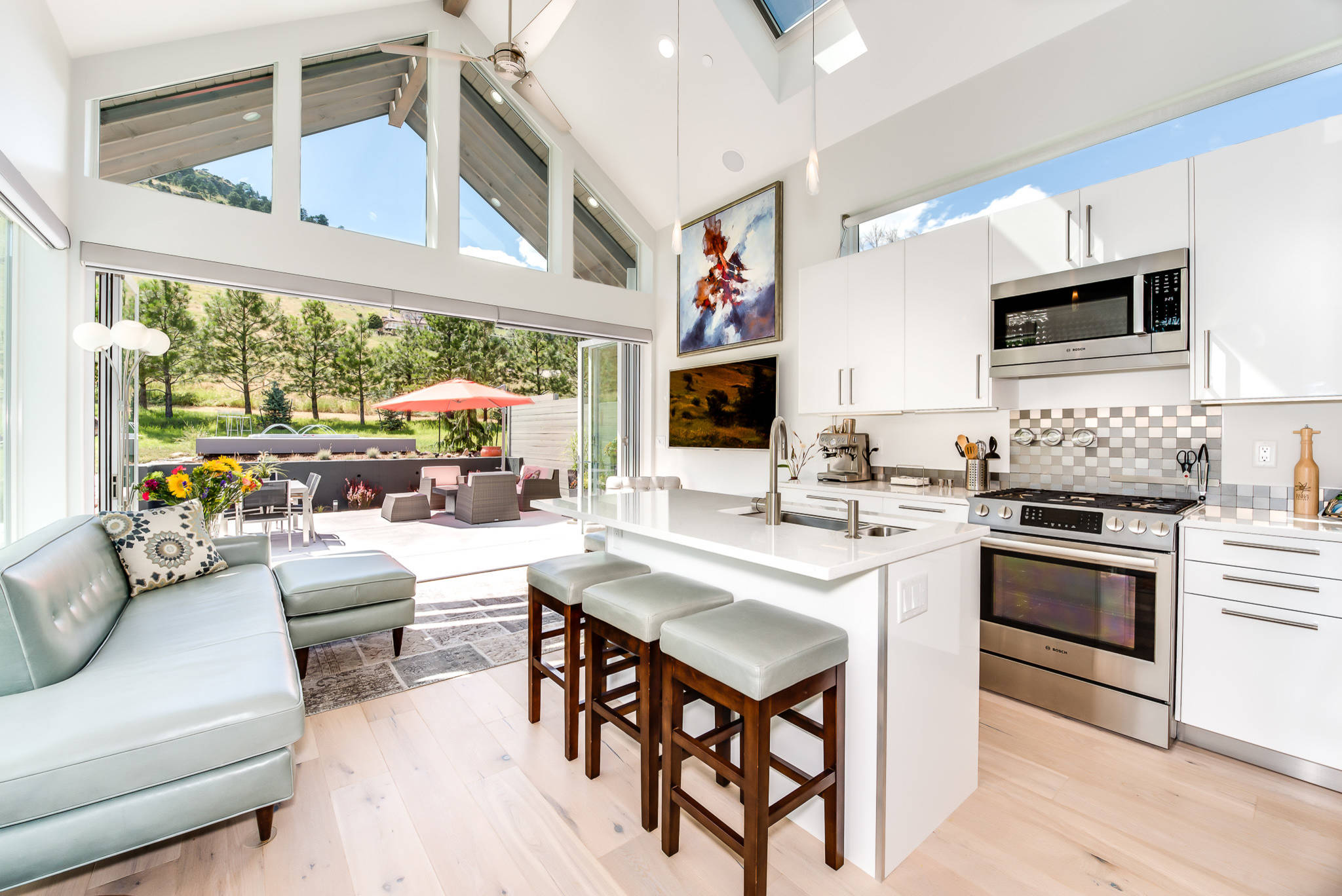 An architect creates a small modern farmhouse in the Colorado foothills for 2 active part-time residents