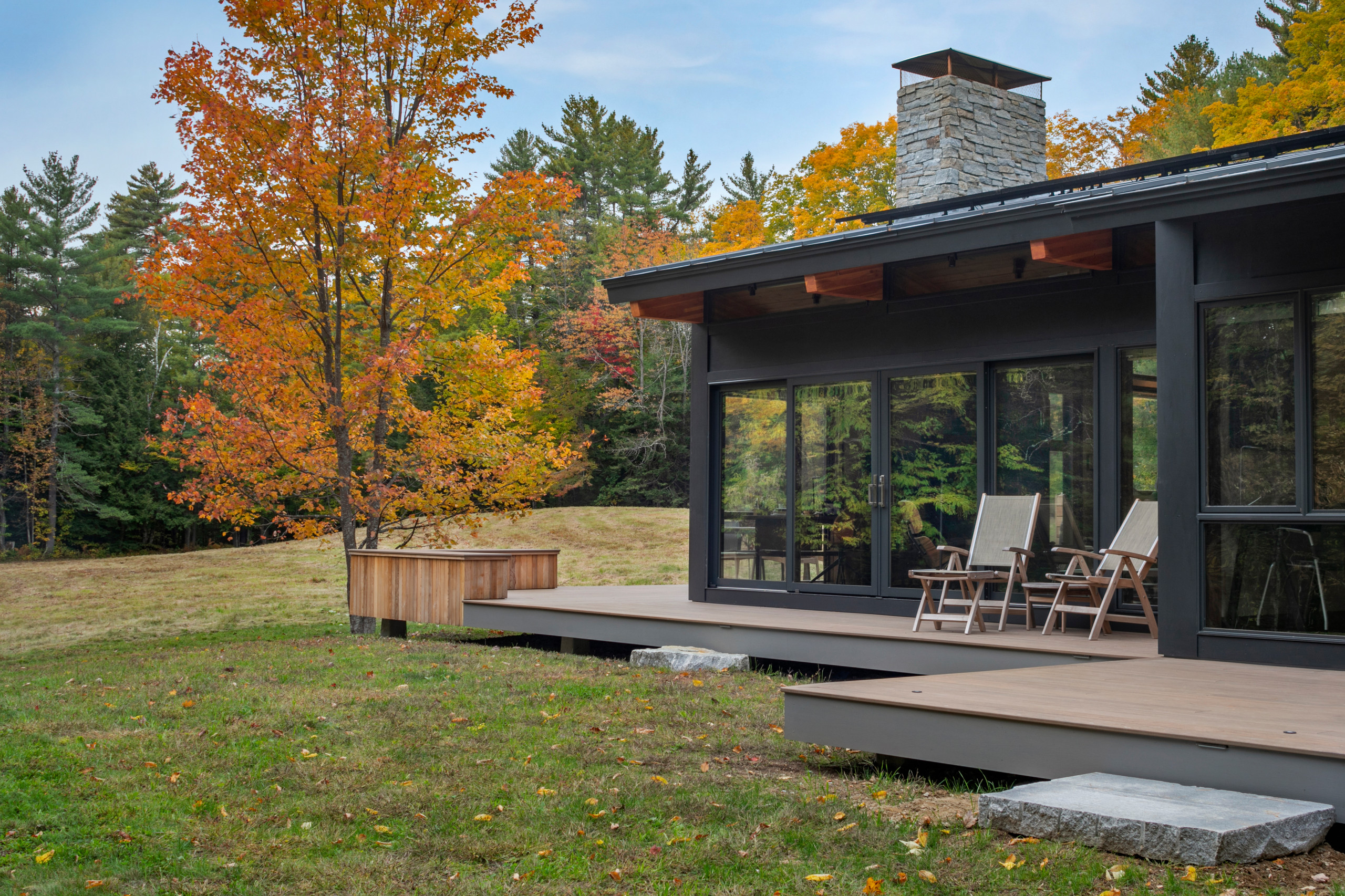 In Massachusetts, USA, this new prefabricated home from Acorn Deck House sits lightly on the land. Its understated exterior and 115 square metres of space recede into the background, leaving more room for outdoor living and for the landscape to command attention.