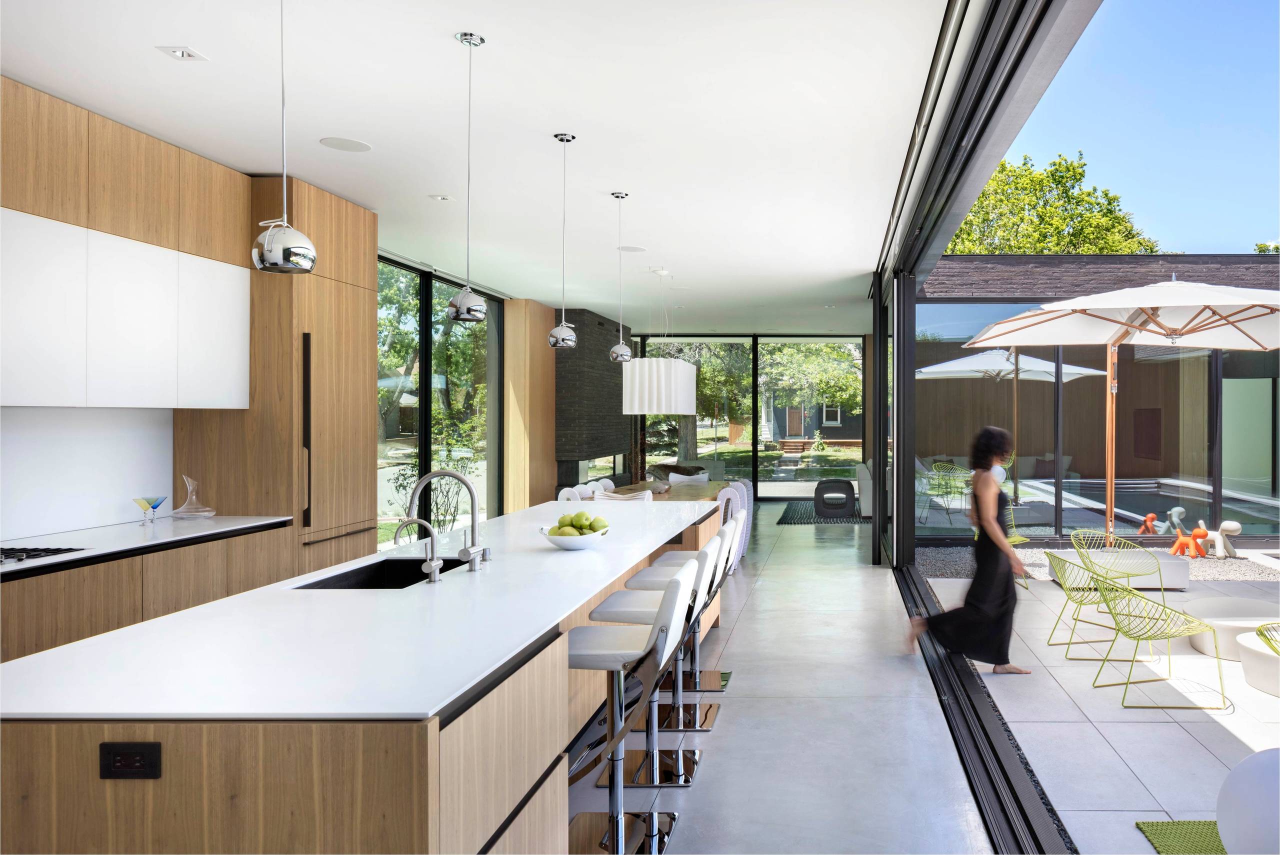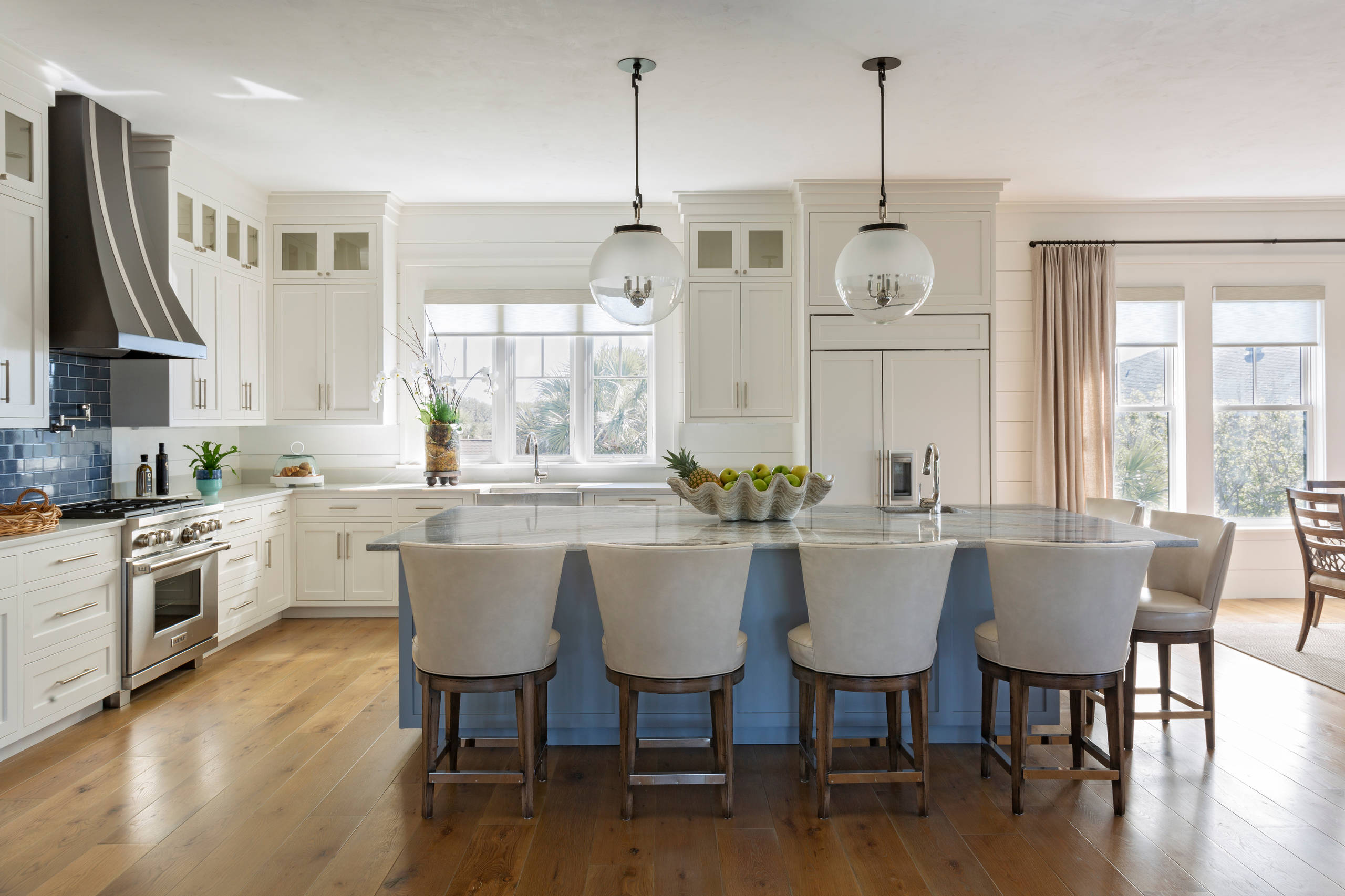 Here again the social aspect comes in: “The island has almost become a ‘dishwashing island,’ as we stand by the sink more than by the stove,” Hornemann says. “When the sink is located in the island, you can wash dishes and still be facing family, friends and guests.”