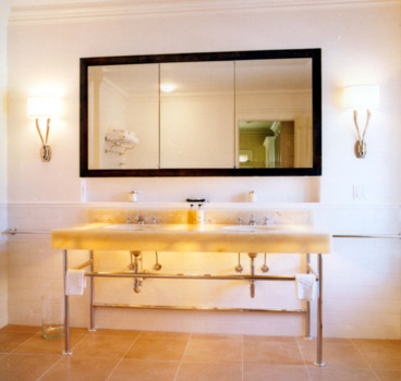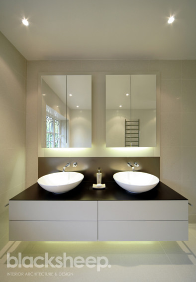 These perfectly composed sinks create peace in this spa bathroom.