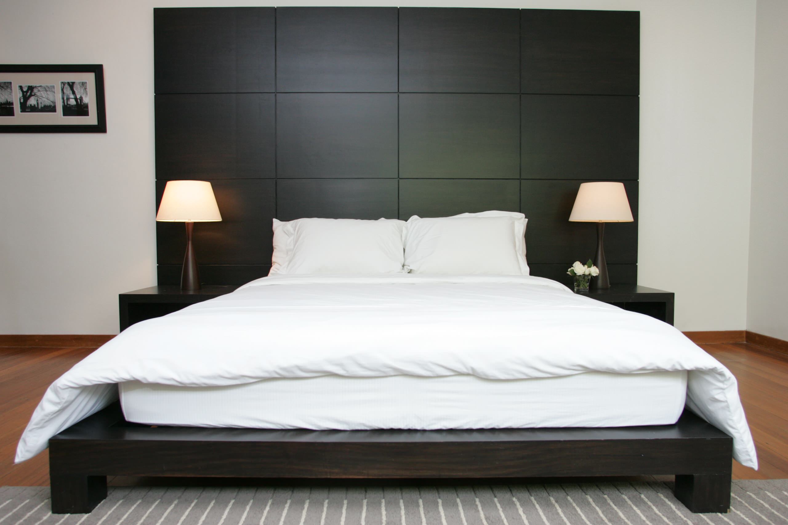 This bed, bedside table, light and bench combination, are an example of near-perfect symmetry. I think it would cure my insomnia.