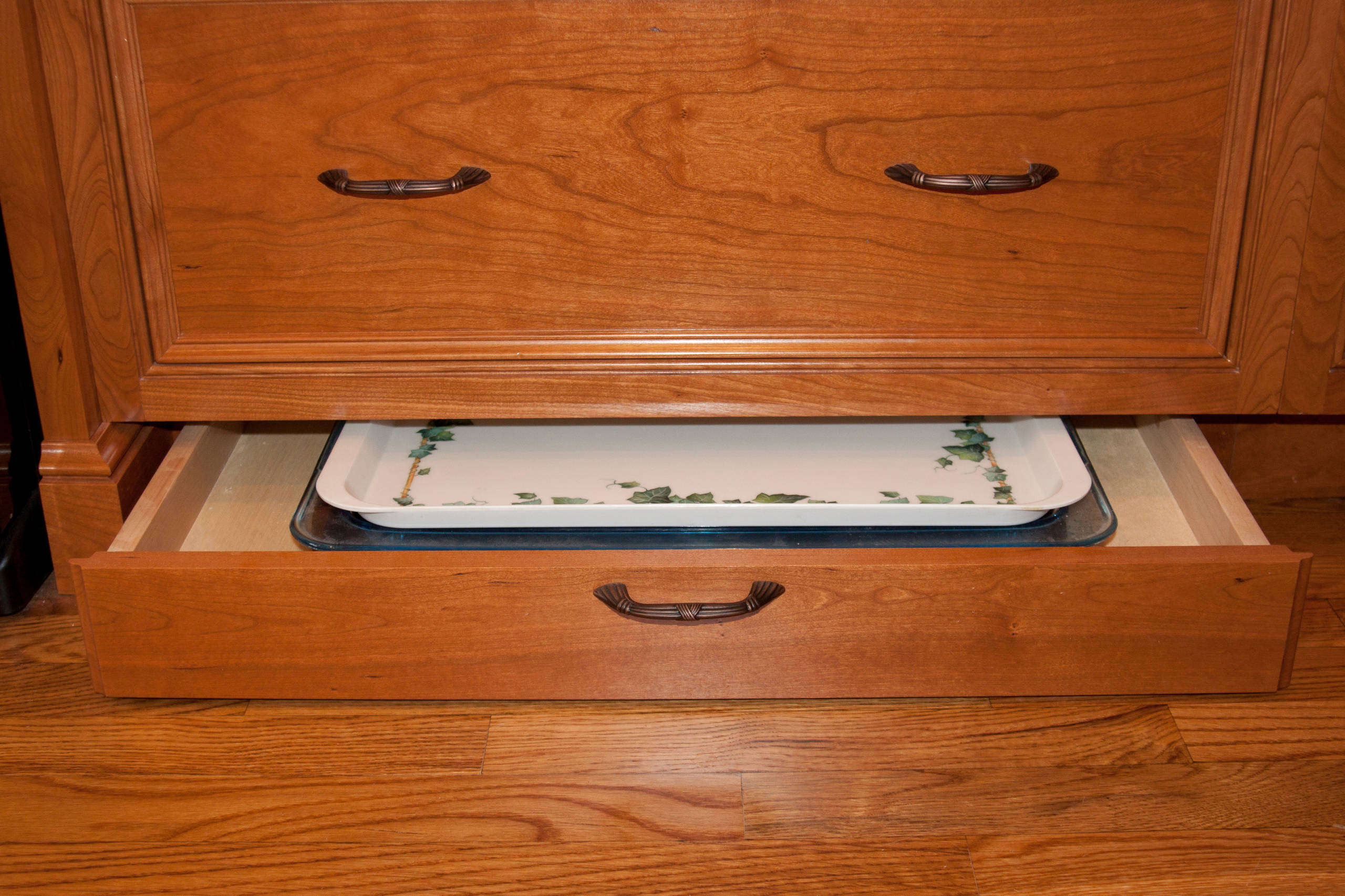 Why: A toe kick drawer is nothing more than a regular cabinet drawer, mounted in the open, unfinished base of a cabinet with trim attached to the front. Measure the linear feet of your toe kicks and you can see how much storage space you could have. Use these drawers to store cookie sheets, baking pans, serving platters and utensils that you use only once in a while.