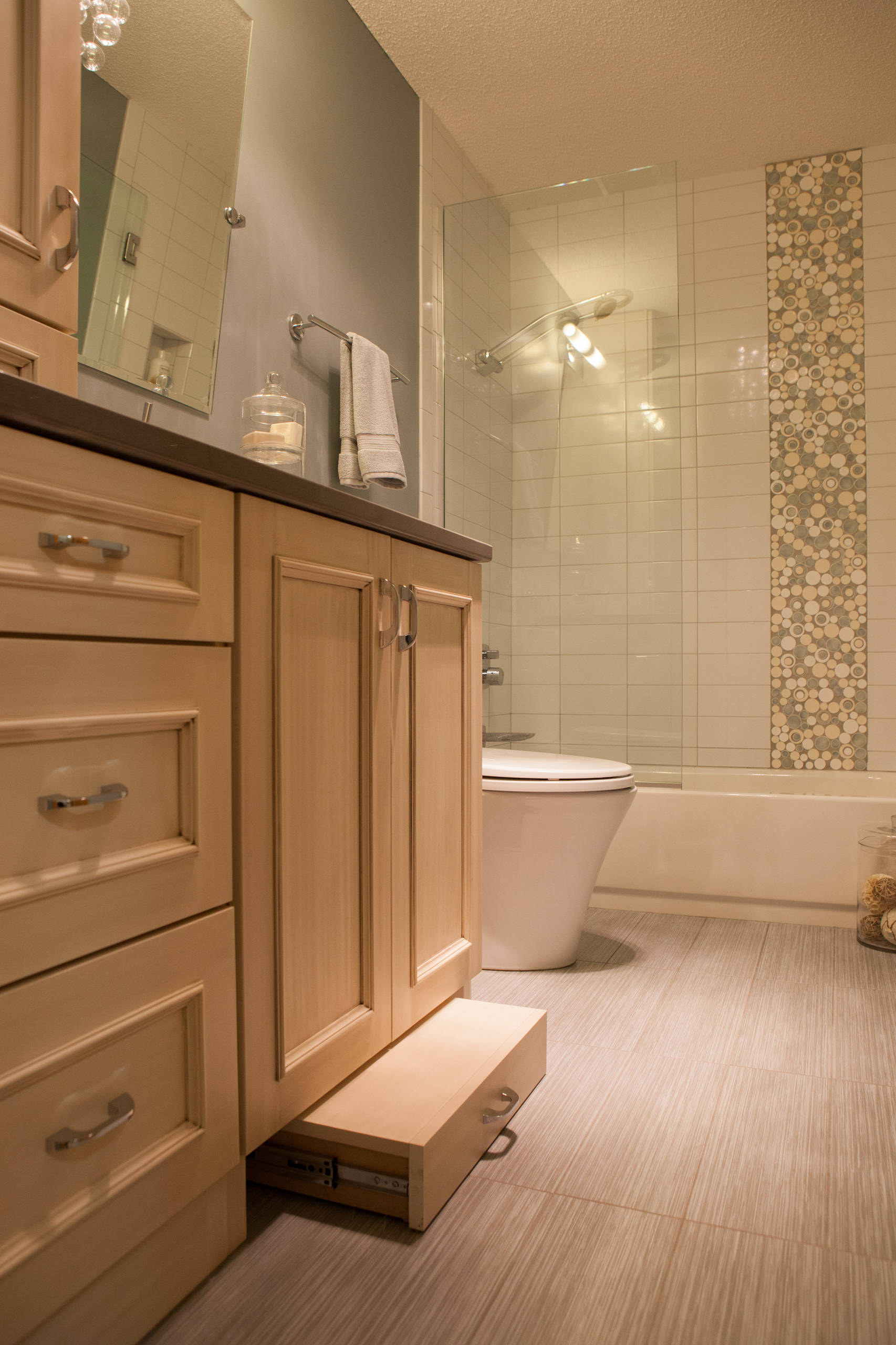 Great project: Install low-lying drawers in your kitchen or bath to hold step stools, pet bowls, linens and more