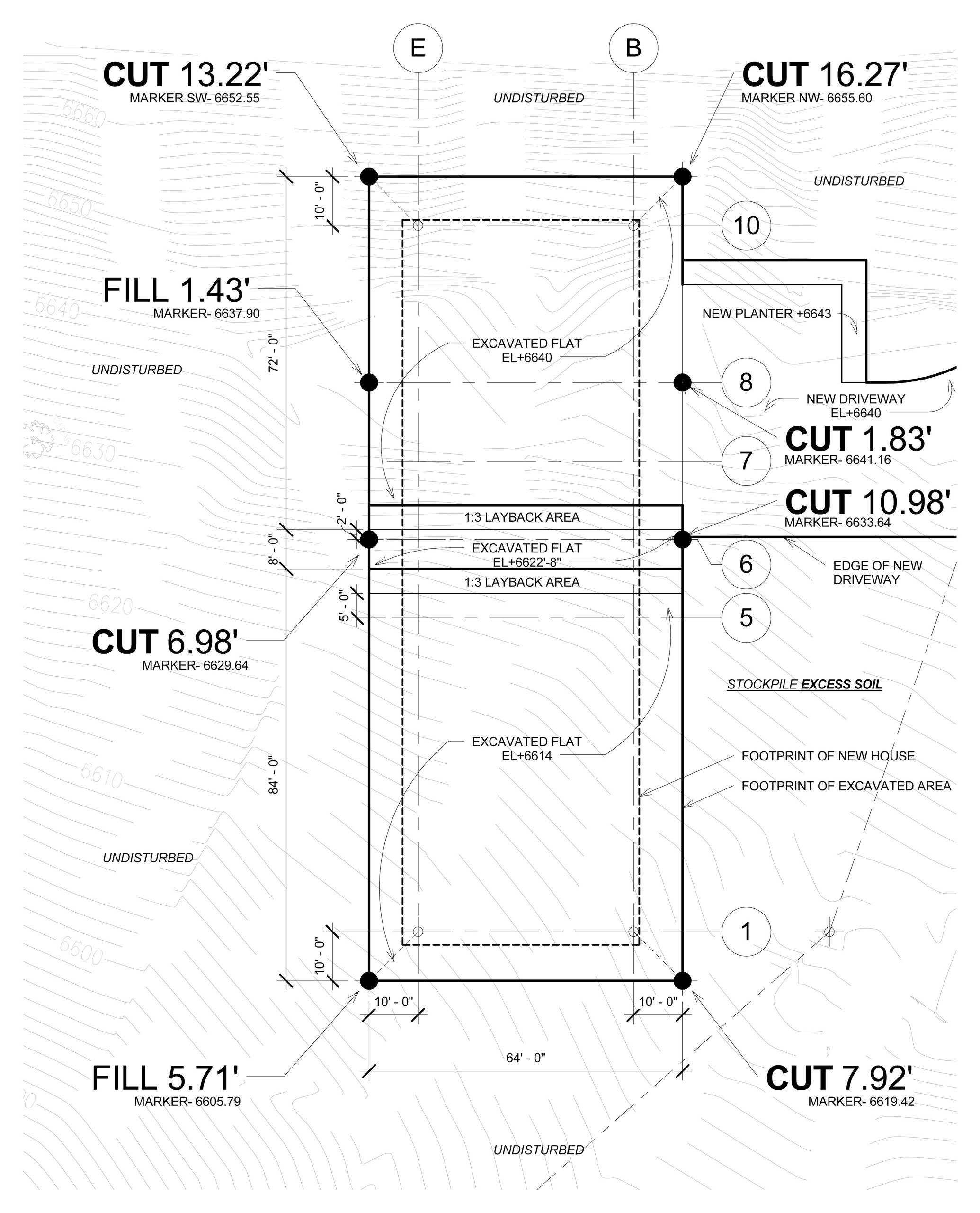 Minimize cut and fill. Once the house is approximately placed, it’s time to find the best location that minimizes excavation. A survey will accurately identify the amount earth removed (cut) and earth added (fill). Doing your homework to investigate how to minimize excavation will mean less expense and a happier hillside.
