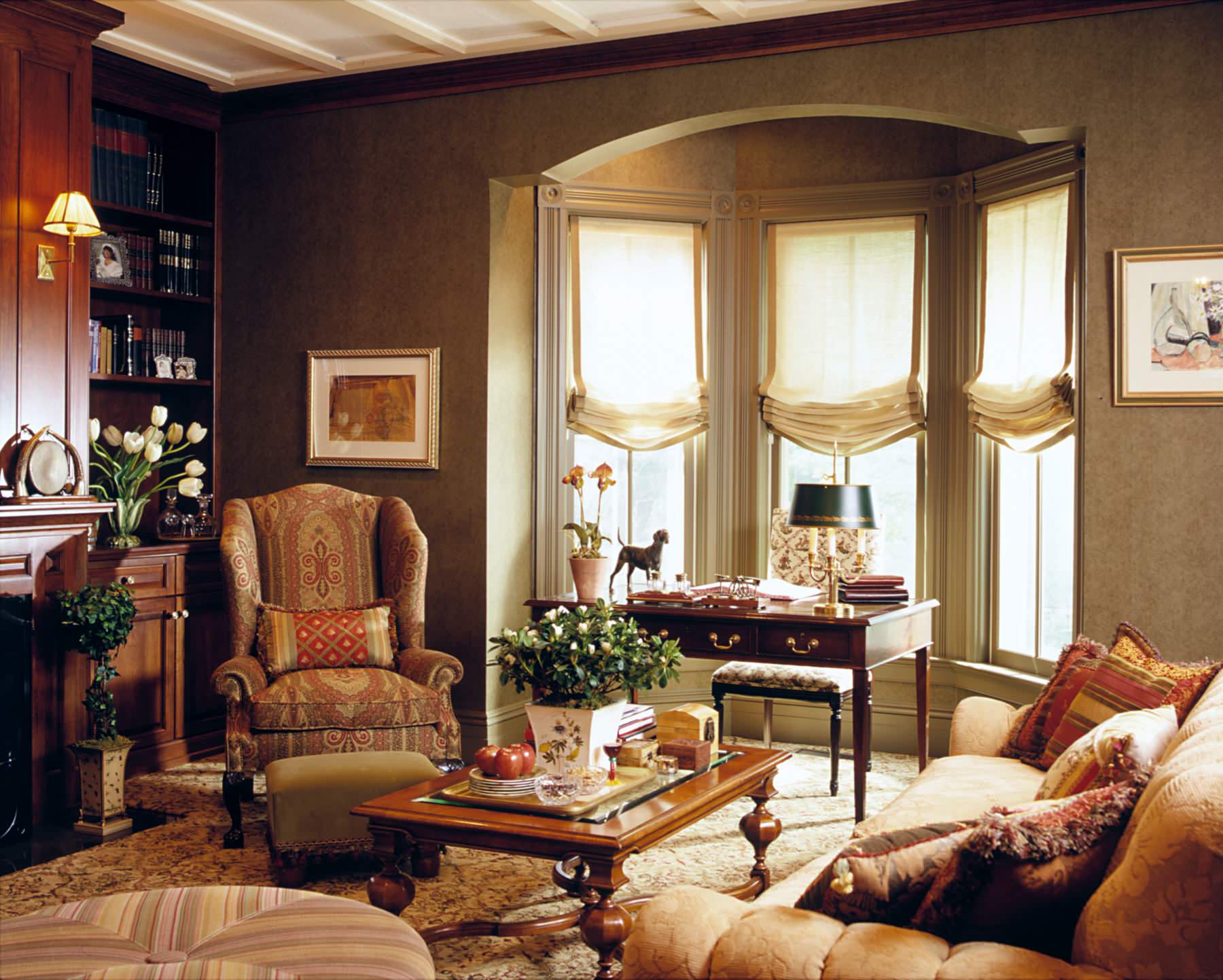 Tip: The drapery rod or track for floor-to-ceiling draperies can be installed on the wall or the ceiling, depending on what suits the room the best.