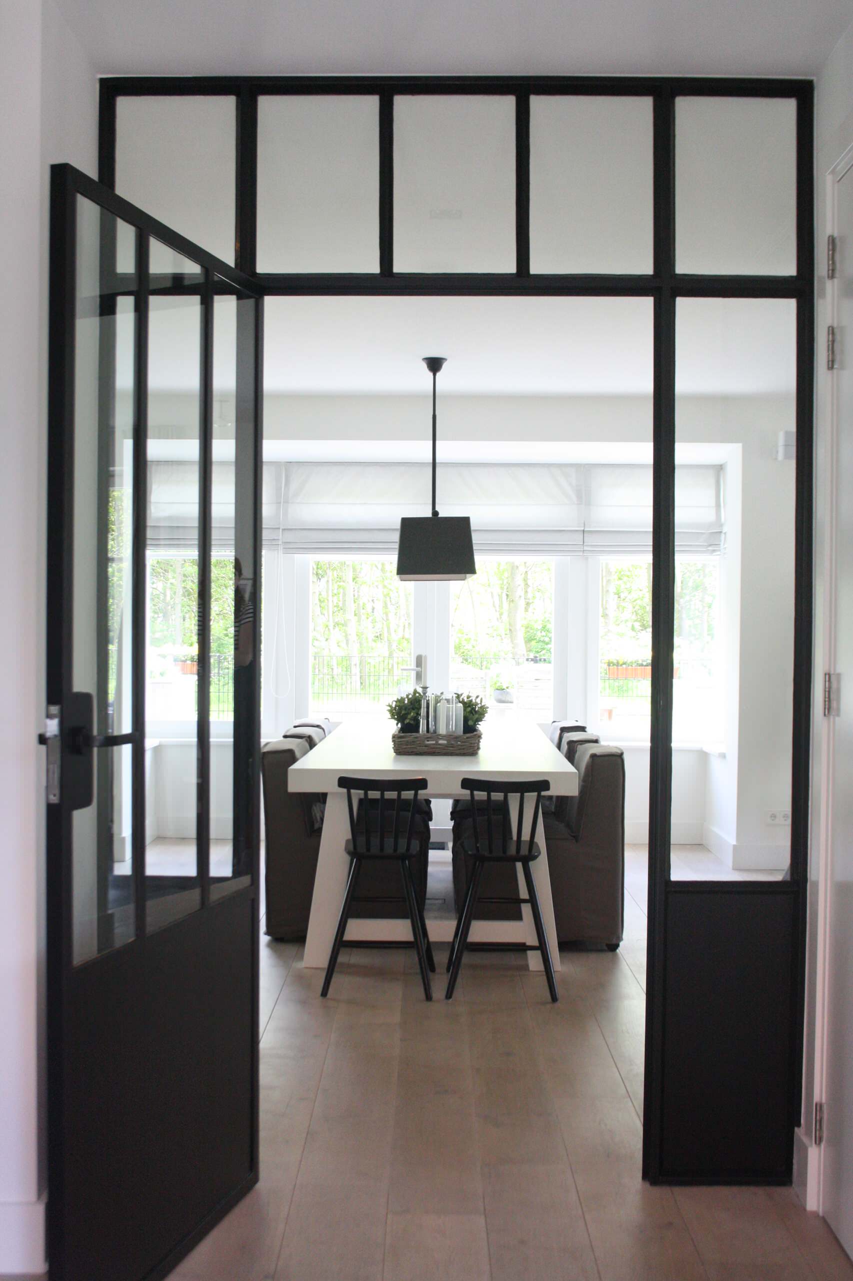 Framing a view is a great way to add interest. In this photo, there's a richer experience of the room knowing that a steel-framed doorway contrasts all of the wood.