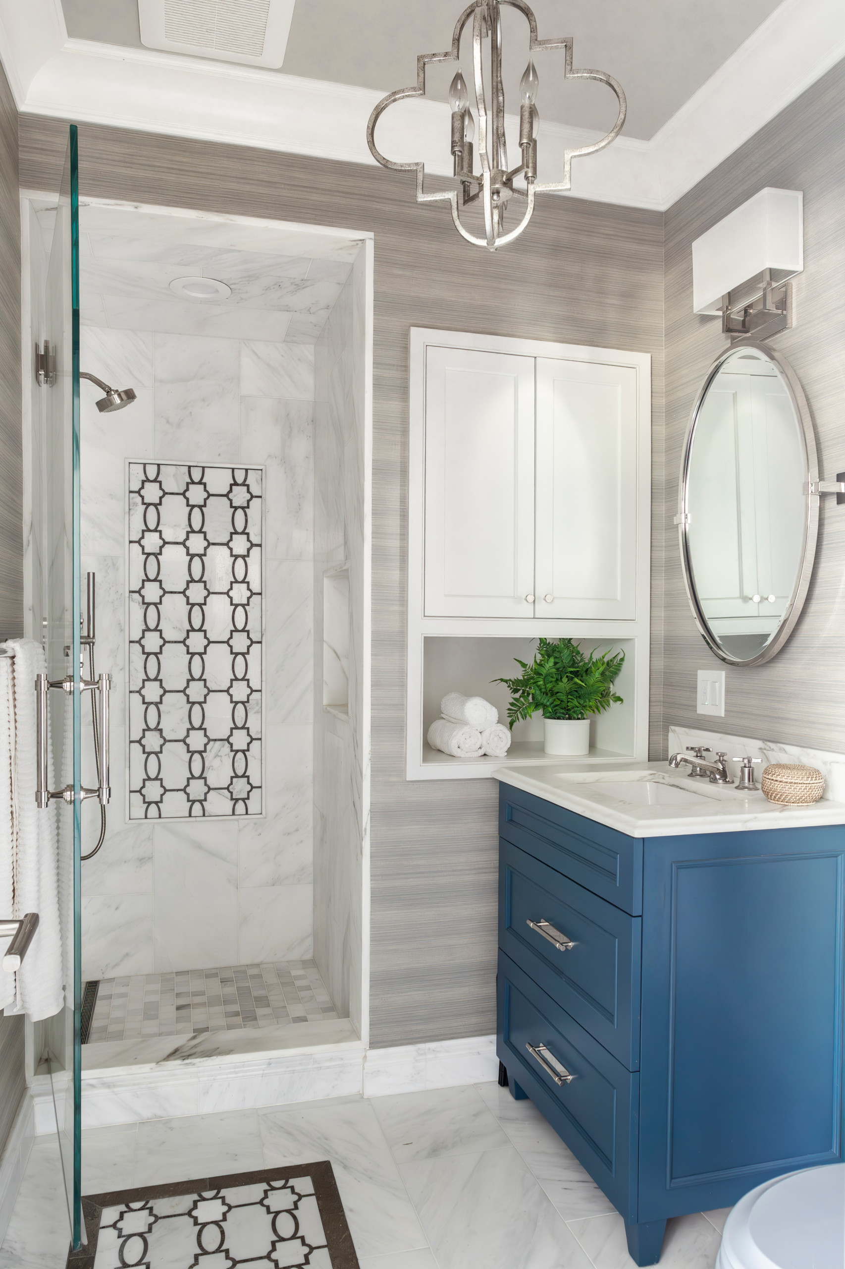 A simple, clarified space is within reach if you’re truly honest with yourself about what you want to keep in the bathroom — and give yourself permission to let go of everything else. It’s better to have a few products you love and use daily than a dozen half-empty containers of products you don’t really like. Likewise, choose to keep only your favorite bath mat and best towels, instead of using those so-so sets in rotation.