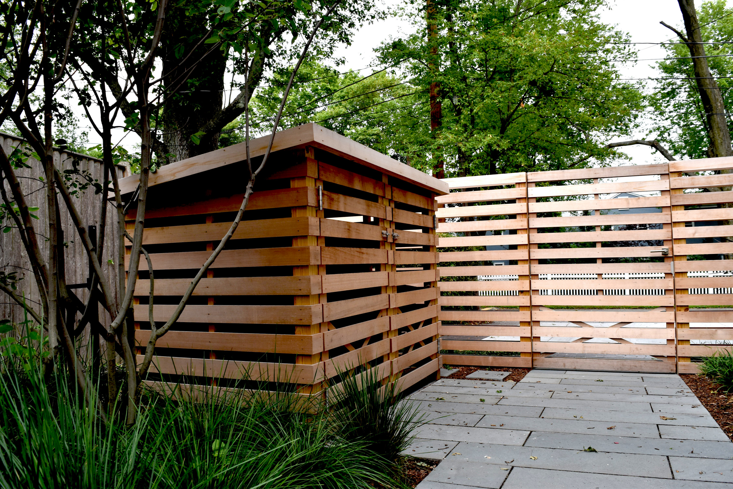 Set up systems now to make it easy to keep things organized in the future. For example, the easiest place to store waste bins is close to the street, concealed by a structure or clipped hedge. Designate a spot for the bins so that putting them away in the future will take minimal effort.
