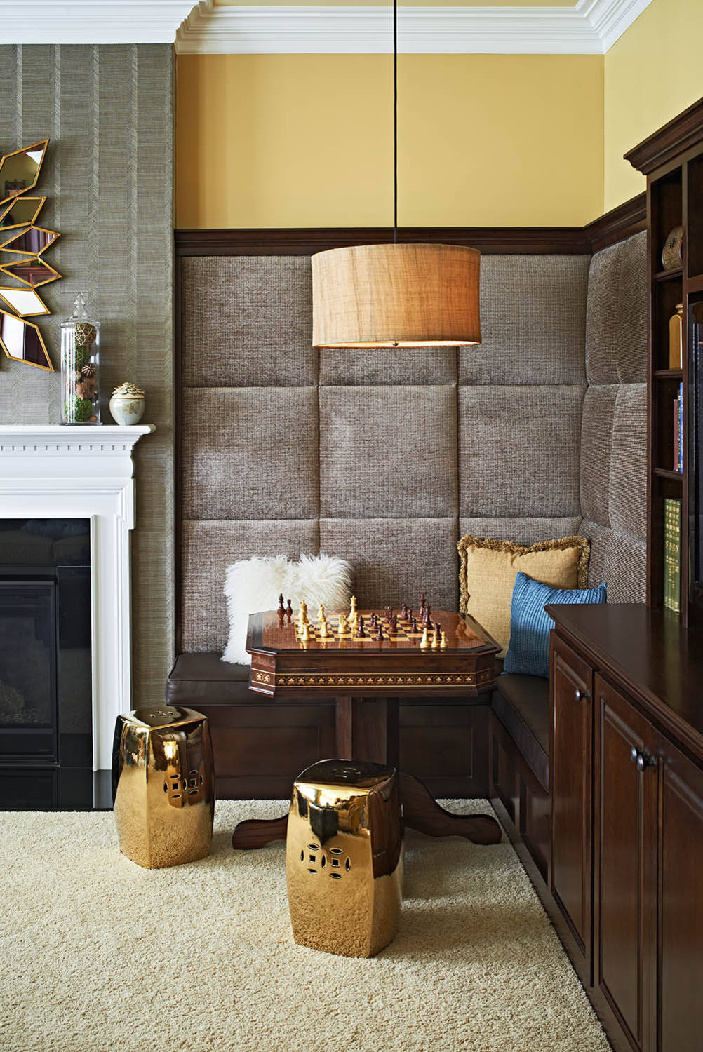 Consider setting up a table and seating by the corner to enjoy a game of chess (or even cards). Since this games area is relegated to the corner, the constant activity won’t disturb the rest of the house.