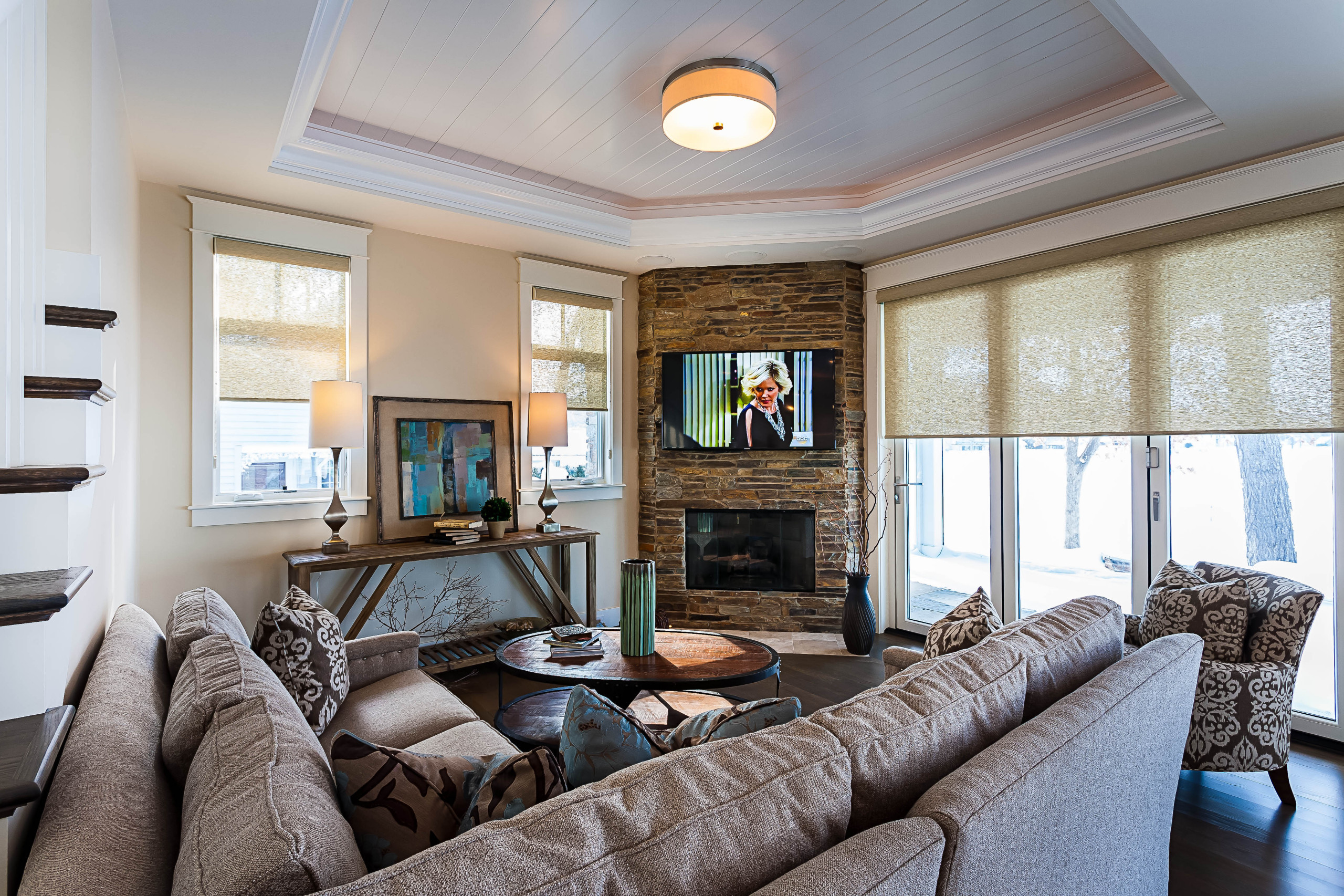 Check out these project photos to see two additional corner-fireplace setups by Gehan Homes.
